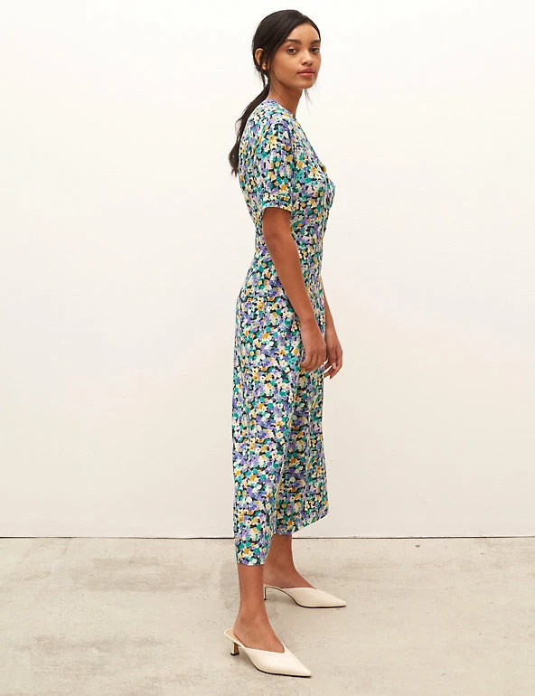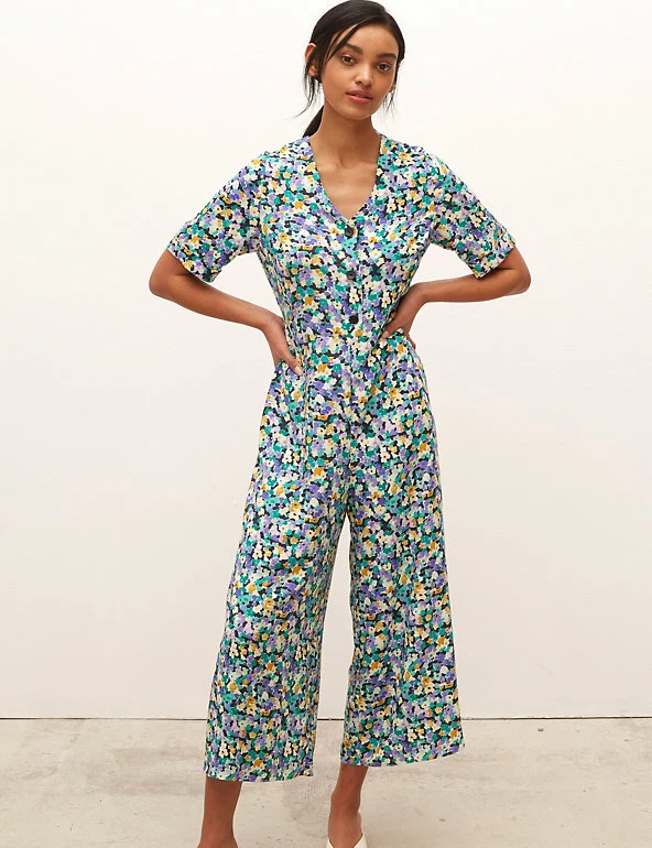 With its fresh floral print, this Nobody’s Child jumpsuit provides a playful take on a key fashion trend. It’s cut in a comfortable regular fit, with a feminine v-neckline and button-up fastenings that add extra detail. The short sleeves and cropped length make it a lovely choice for warmer days. Made with sustainably sourced viscose.