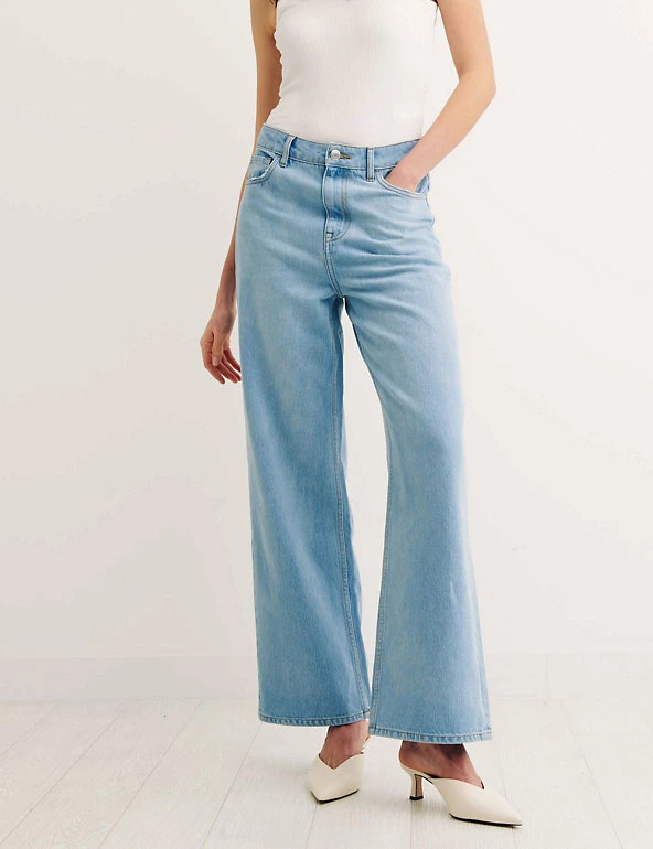 Wide leg, Button and zip fastening, High waisted, Organic cotton
