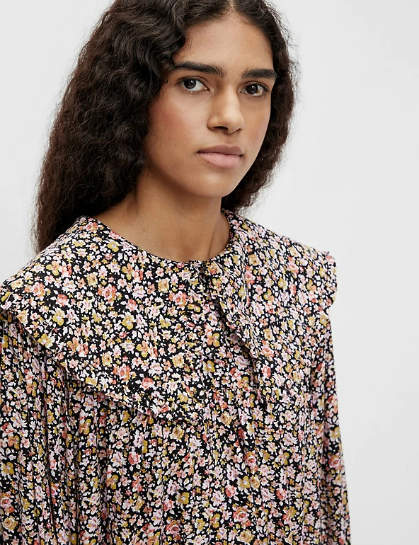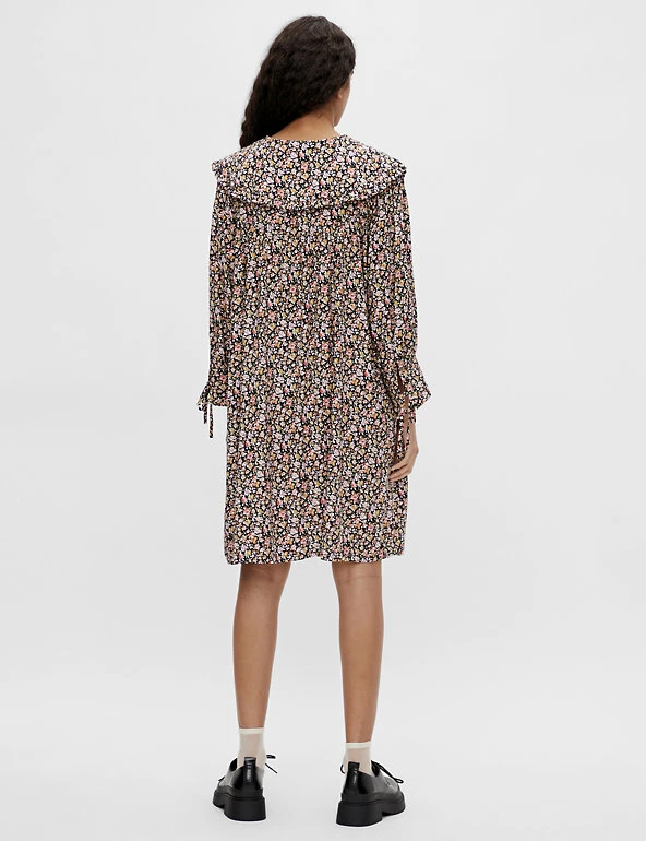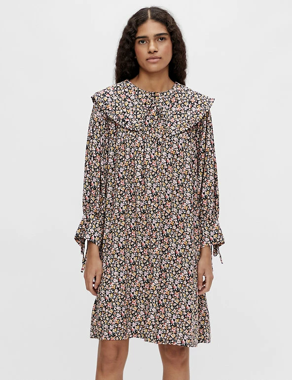Dial up the romance in your wardrobe with this pretty floral dress by OBJECT. The smock style comes in a breezy relaxed fit and falls to the knee. Fluted cuffs and an oversized collar add extra charm. Made with sustainably sourced viscose.
