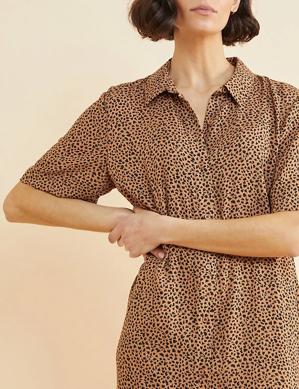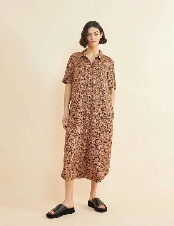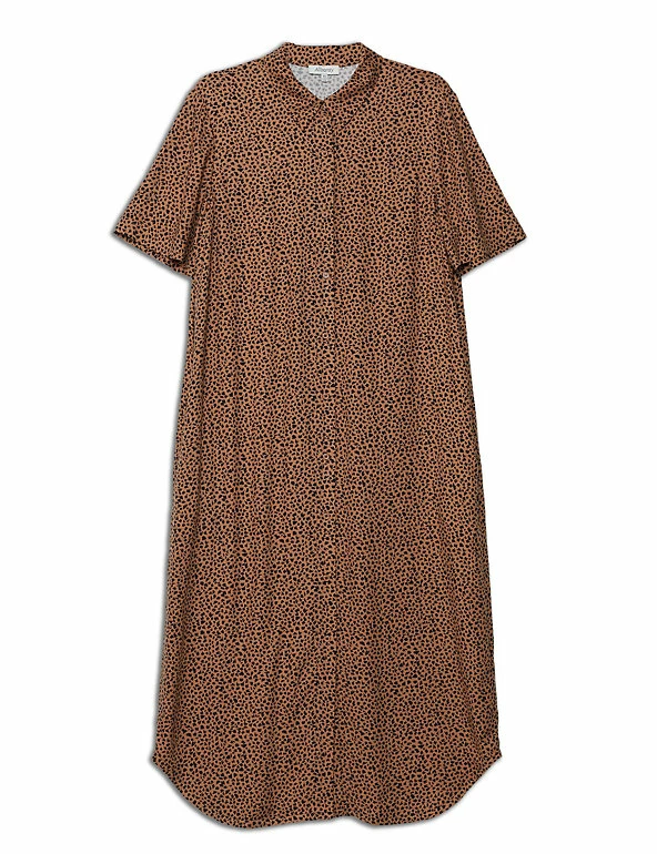 This effortless shirt dress from Albaray is a throw-on-and-go hero. Designed in a regular fit, this button-down midi has short sleeves and a classic collar. It features a timeless animal print throughout, and is finished with two side pockets and a curved hem for a casual feel. Made with sustainably sourced viscose.