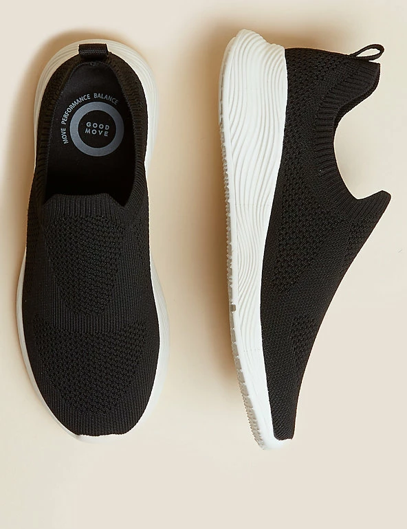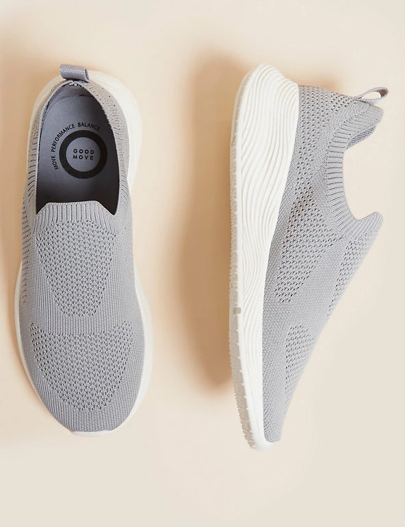 Take your day up a step with these slip-on trainers from our Goodmove collection. The knitted style creates a secure fit, while a lightweight Tencel lining offers breathability. The heels feature shock-absorbing soles and smart Insolia Cradle technology gives improved stability. There’s even antibacterial padding for freshness and clever Insolia Flexยฎ technology to ensure the correct placement of your feet for ultimate comfort throughout your workout.