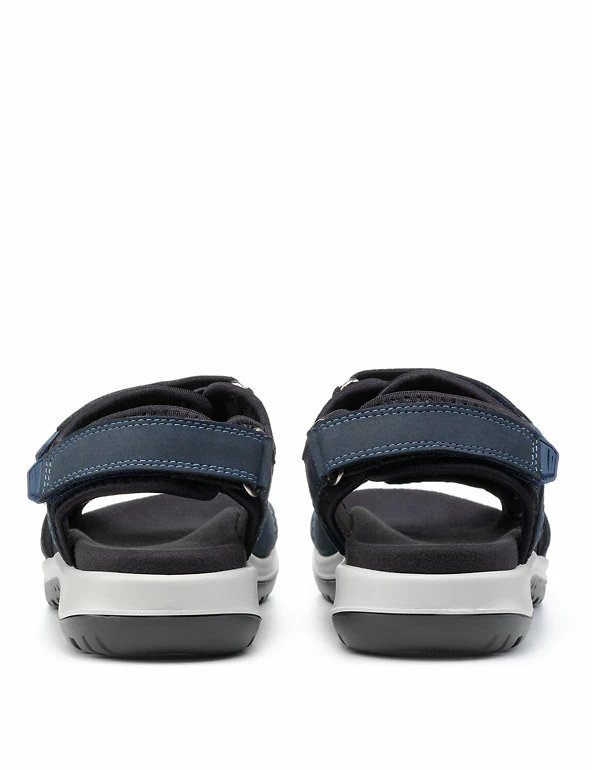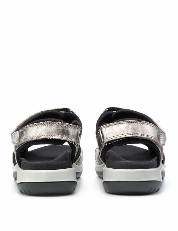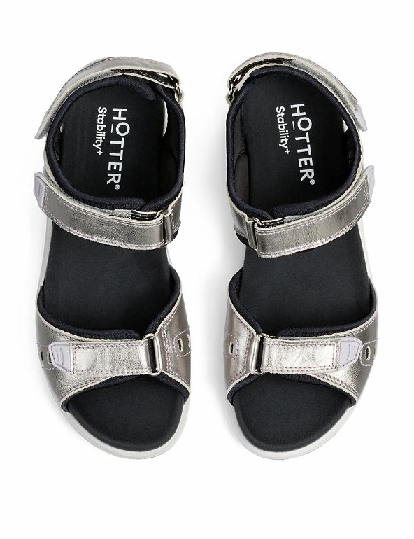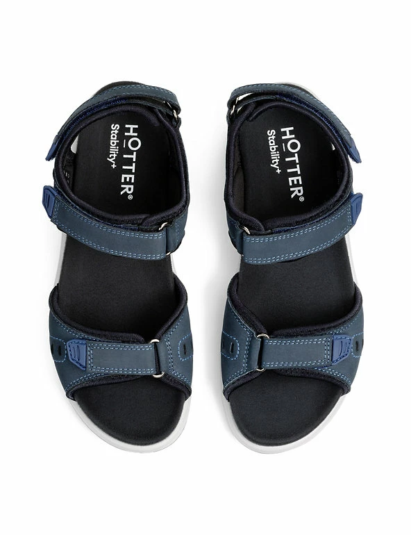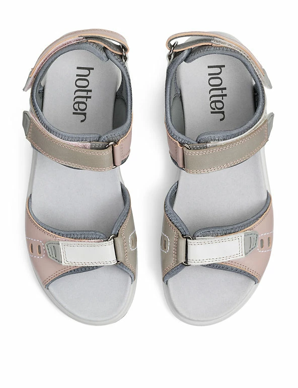 Get ready to explore in these pure leather sandals from Hotter. Designed for lasting comfort, this open-toe pair is crafted in a regular fit. The leather upper has secure riptape fastenings, plus ankle and heel straps for extra support.