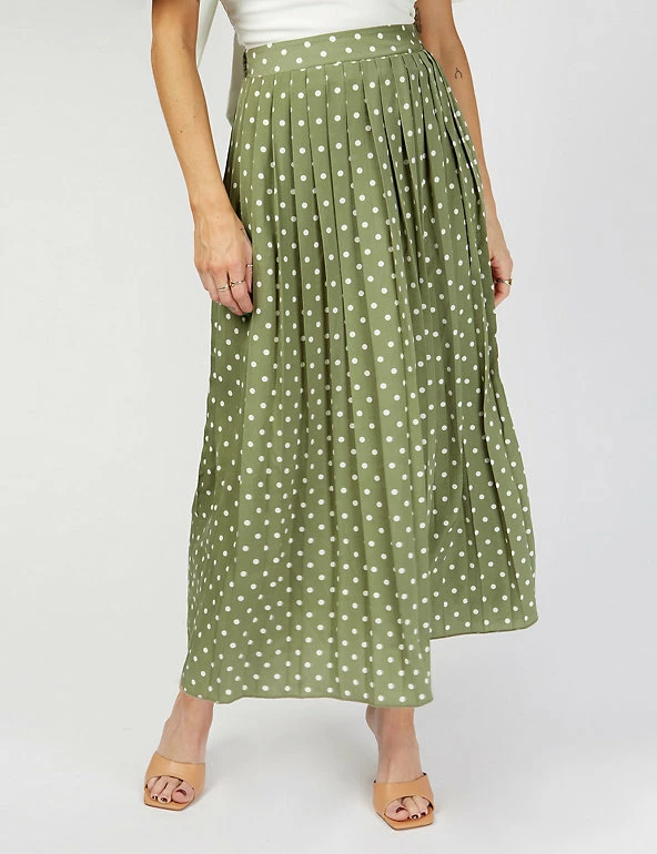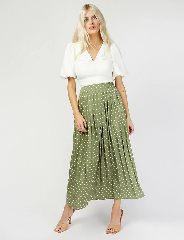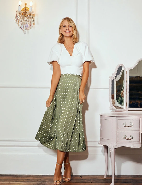 Add timeless polka dots to your wardrobe with this chic skirt by Vogue Williams X Little Mistress. This versatile style is designed with an elasticated waist for your perfect fit. It’s pleated throughout for extra texture and movement and sits at a midaxi length for an on-trend look.
