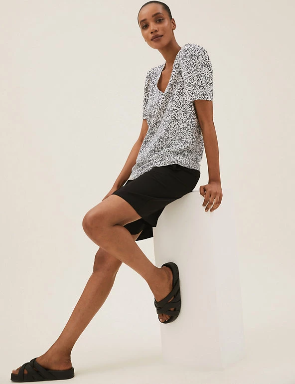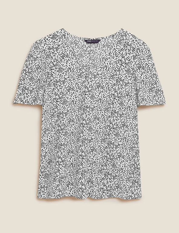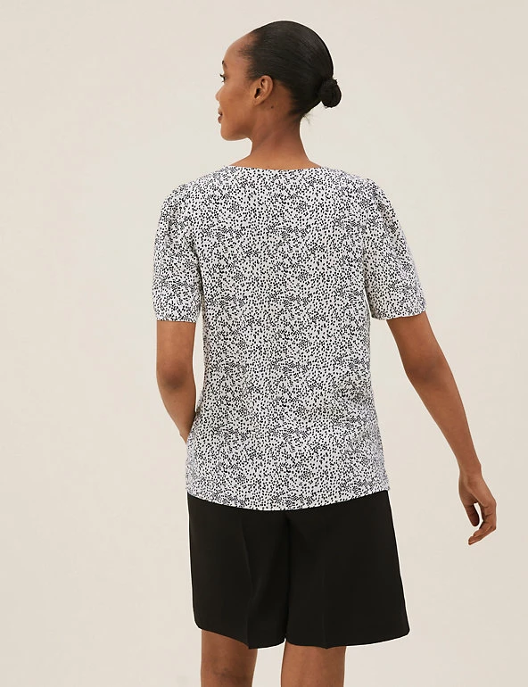 Perfect for dressing up or down, this printed top is sure to become a smart-casual favourite. This chic piece is designed in a regular fit. A sharp v-neck gives it a flattering look, while short puff sleeves add a touch of volume.