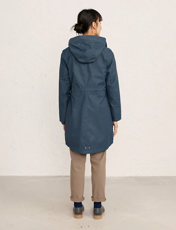 This raincoat from Seasalt Cornwall will make a practical addition to your work or weekend wardrobe. It’s designed in a regular fit with a flattering curved hem. A drawstring hoods gives an extra-snug feel. Stitch detailing and popper and zip fastenings add utility-inspired touches, and there’s plenty of room for essentials in the flap and zip pockets. Made with recycled polyester.