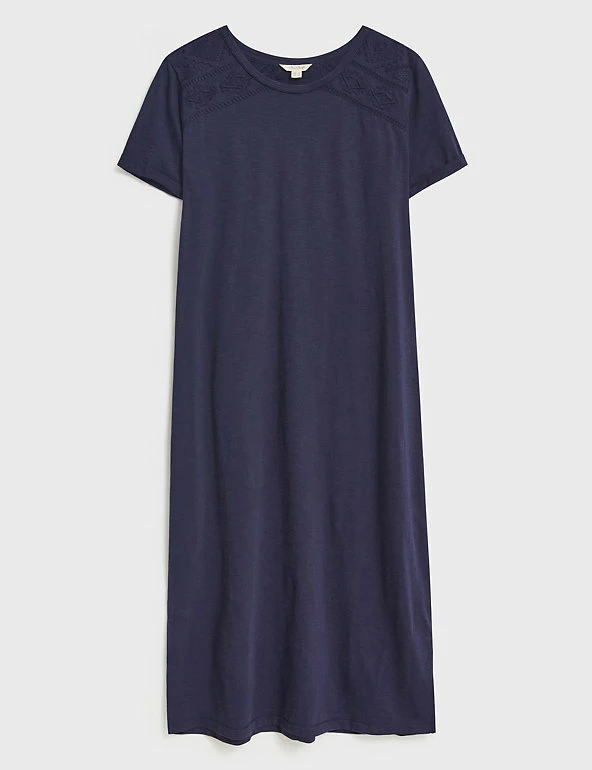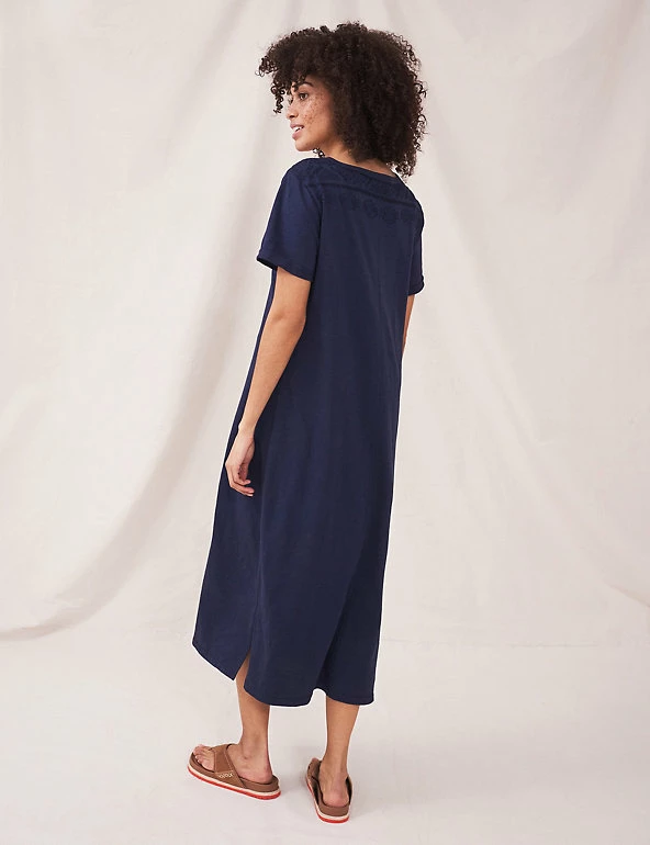 Off-duty style is easy with this pure-cotton dress from White Stuff. The t-shirt design is cut to an easy regular fit and sits at a flattering midi length. Short sleeves and a round neck add to the laid-back look. It’s detailed with intricate embroidery on the shoulders for a premium finish.
