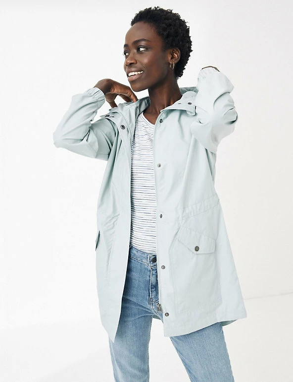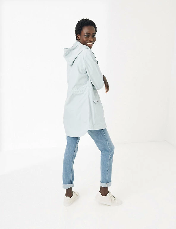 Feel stylish whatever the weather in this FatFace parka. This practical piece is cut to a regular fit for throw-on-and-go appeal. It has internal drawcords to highlight the waist, and a longline hem for extra coverage and a flattering finish. A hooded neck and elasticated cuffs help to keep the cold out, plus there’s plenty of room for essentials in the two patch pockets. This parka has a pure cotton lining for comfort and fastens with poppers and a zip.