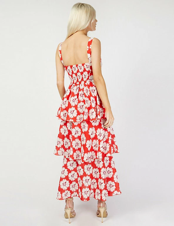 Just add sunshine to this floral tea dress by Vogue Williams X Little Mistress. This strappy style is cut to a flattering regular fit, with a feminine sweetheart neckline and a comfortable shirred back. The midaxi-length skirt is tiered throughout for extra volume and plenty of swish.