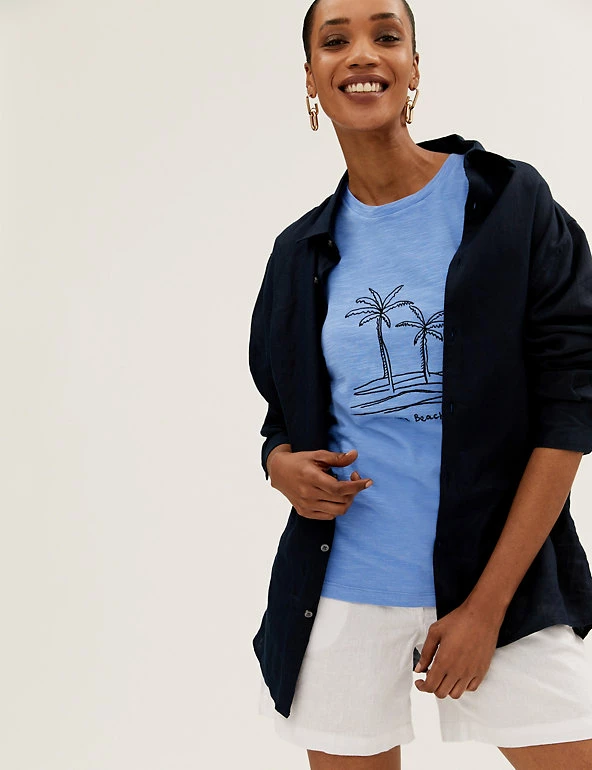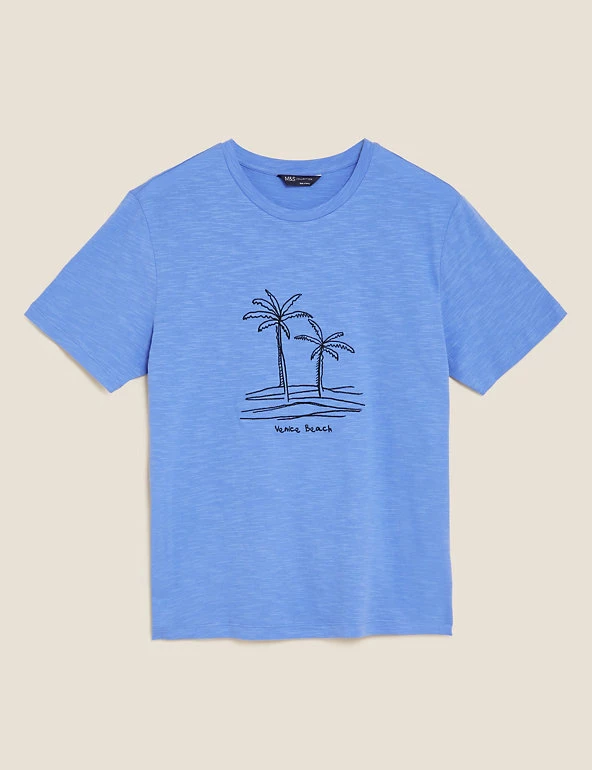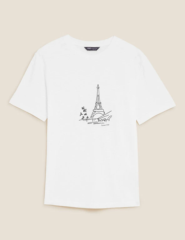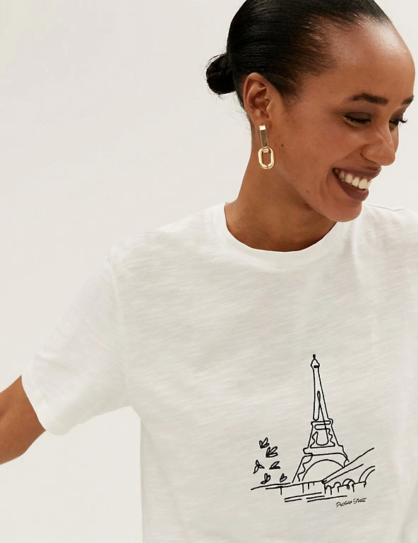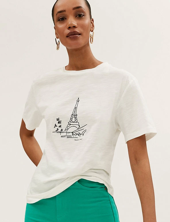 Say bonjour to your new favourite t-shirt. Regular fit, with an embroidered Parisian design on the front for an elegant finish. Made from pure cotton with a classic crew neck. M&S Collection: easy-to-wear wardrobe staples that combine classic and contemporary styles.