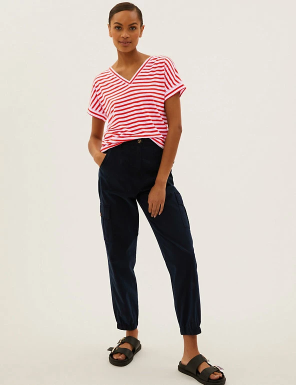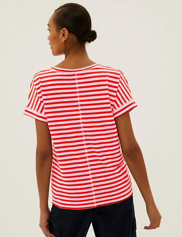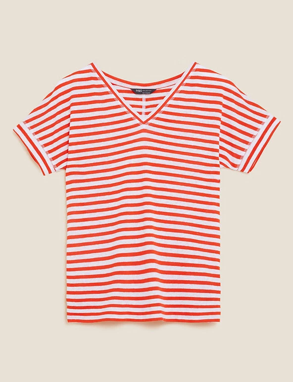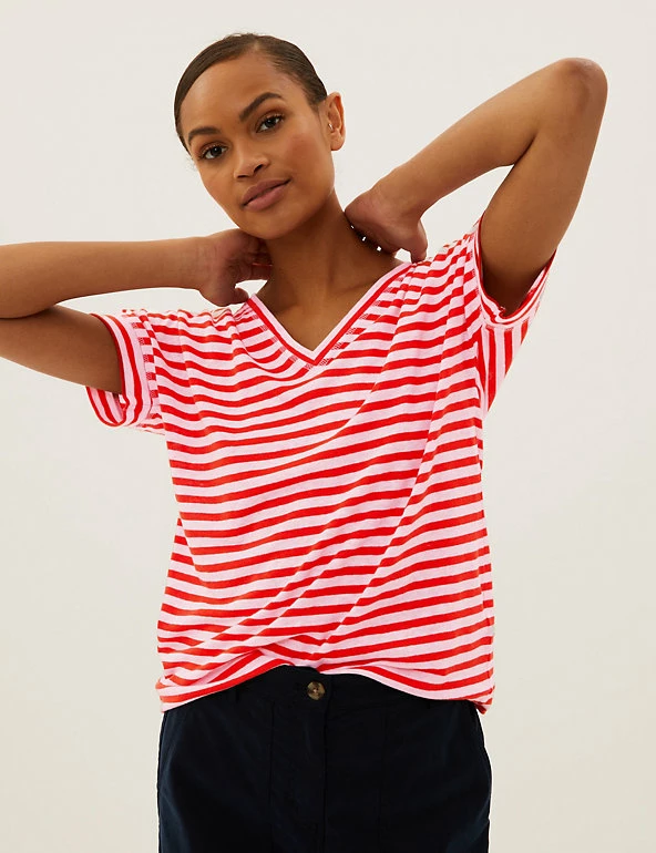No wardrobe is complete without a striped t-shirt in breathable linen-rich fabric. Regular fit design. Complete with a flattering v-neck.