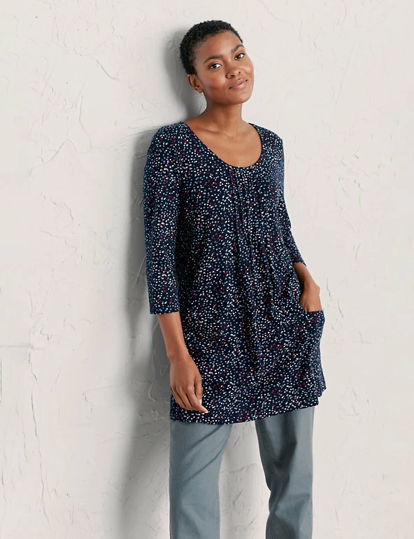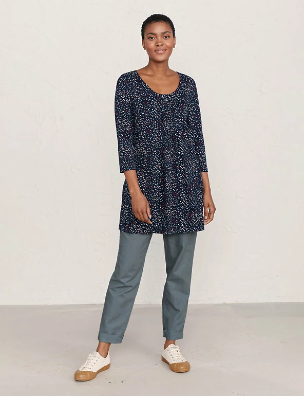 With its playful polka dot print, this tunic from Seasalt Cornwall is a truly pretty piece. It’s cut to a regular fit from softly textured pure cotton and comes in a flattering longline shape that’s ideal for layering. Three-quarter length sleeves and delicate pintuck detailing add a feminine finishing touch. Made with organic cotton.