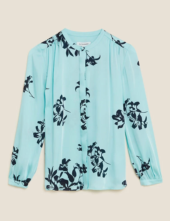 Slip on this floral shirt from our Autograph collection for a sophisticated touch. It’s cut in a regular fit, with a collarless high neck for a neat look. Long sleeves with tidy cuffs and a concealed button-down front offer added elegance. Made with recycled polyester.