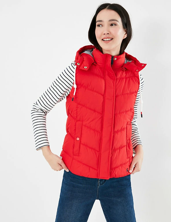 Stay cosy on cooler days with this classic gilet from Joules. It comes in a comfy regular fit and features a hood with a drawstring fastening for extra protection from the wind and rain. The lightweight quilting helps to keep you warm. This outerwear piece is finished with a popper and zip fastening and handy side pockets.