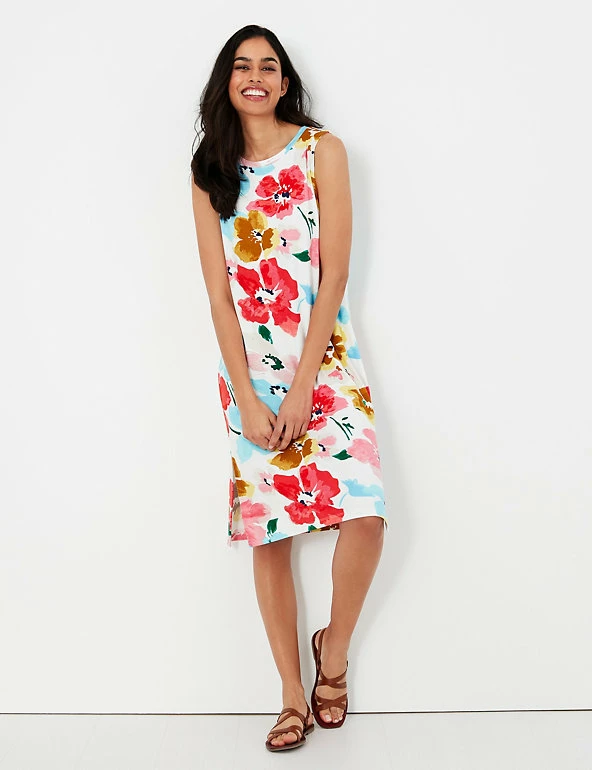 This floral beach cover up from Joules is a must-pack for sunny holidays. It’s designed in a flattering regular fit, with a cool sleeveless shape that’s perfect for the warmer weather. This comfy jersey style is complete with two large slits in the skirt for flexible wear and easy layering.