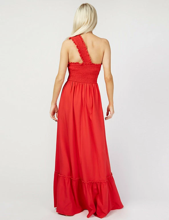 Make an entrance in this stunning smock dress by Vogue Williams X Little Mistress. This regular fit style has a shirred bodice for a close yet flattering fit. The single asymmetric strap adds a modern touch and the maxi skirt is tiered for extra volume.