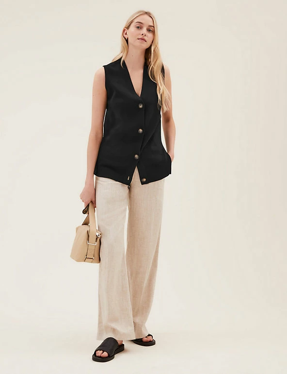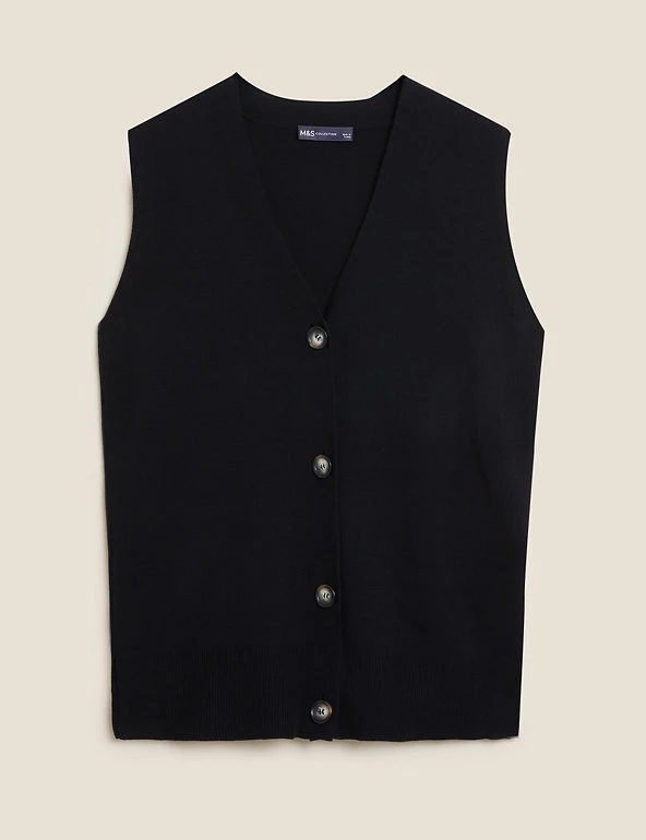 Lock in heat on chilly days with this cotton-rich cardigan. It has a relaxed fit, ribbed trims and sleeveless cut for a laid-back look. Large buttons run down from the v-neck for easy fastening. Made with sustainably sourced viscose. M&S Collection: easy-to-wear wardrobe staples that combine classic and contemporary styles.