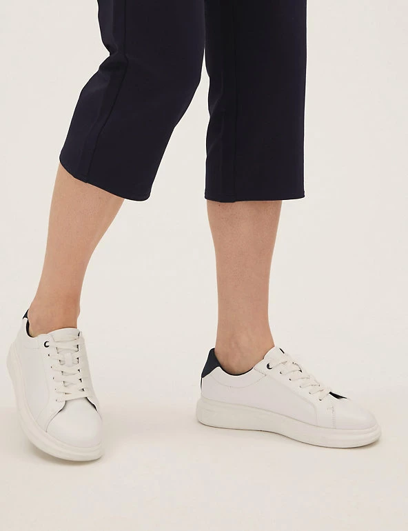 Complete your laid-back look with these cotton-rich joggers. They’re designed with straight legs in a cropped length for a contemporary look. The high waist with elasticated back offers comfortable wear, perfect for working from home. Our smart StayNew™ technology keeps them looking newer for longer. We only ever use responsibly sourced cotton for our clothes.