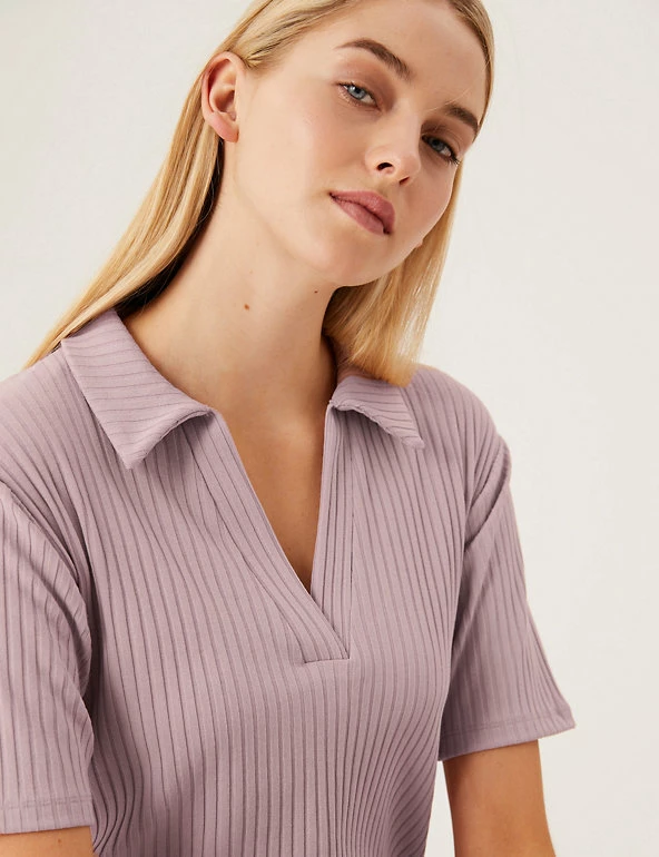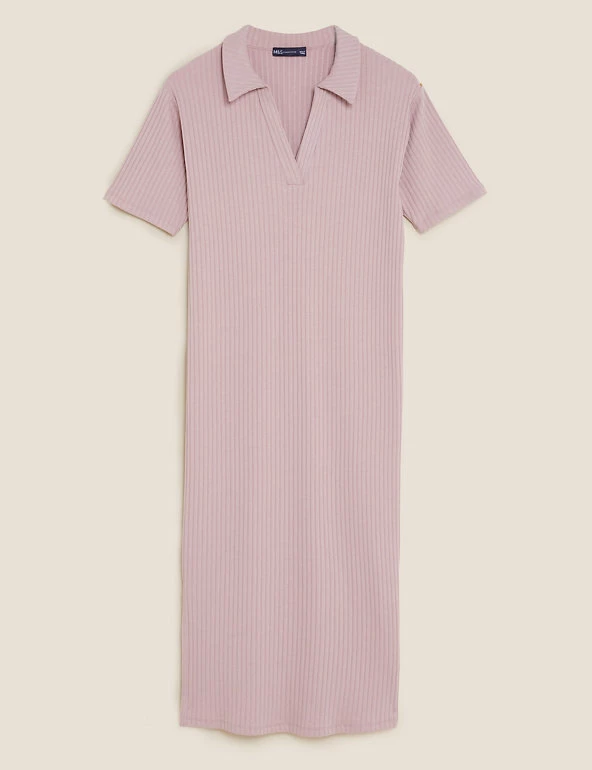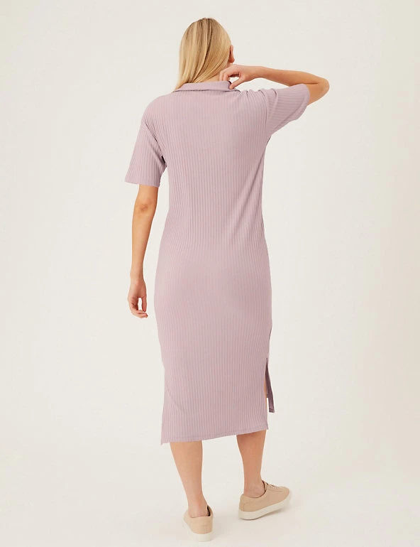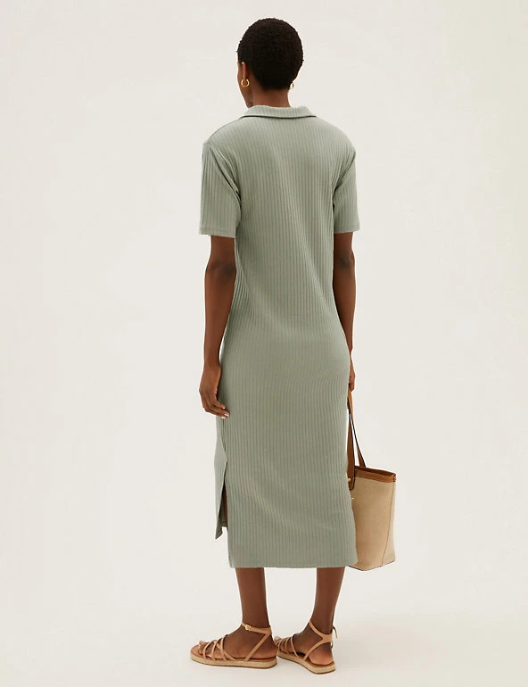 This ribbed column dress will become your go-to for off-duty looks. It’s cut to a regular fit, with a smart collared neck and short sleeves. The side split adds modern appeal to the sophisticated midi length. Jersey fabric with added stretch gives optimal comfort.