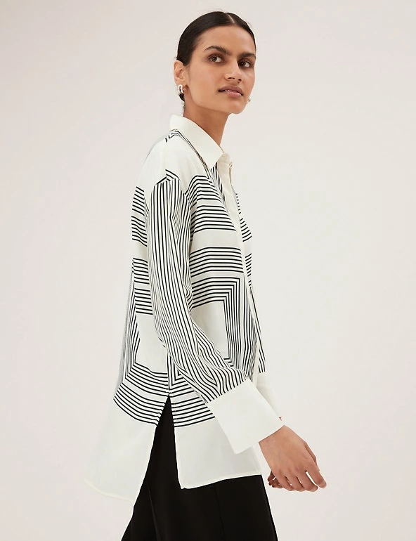 Bring a statement look to your ensemble with this striped shirt. Regular fit, with a plain collar and cuffs for a stand-out look. Longline silhouette gives extra coverage.