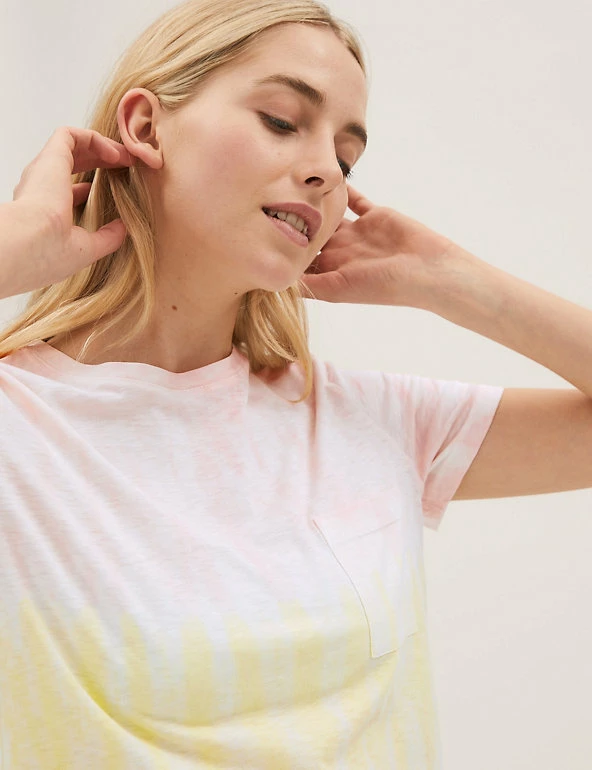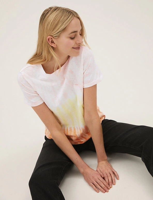 Bring a burst of colour to your day with this pure cotton printed t-shirt. Regular fit, with a classic crew neck. Cosy slub texture and a neat pocket on the chest. We only ever use responsibly sourced cotton for our clothes.