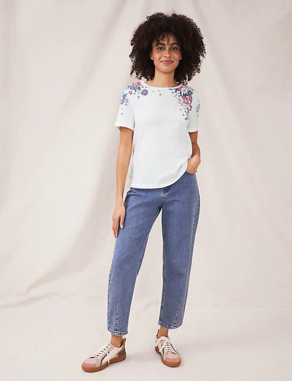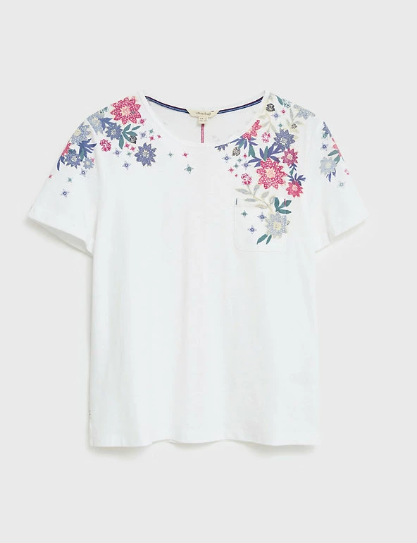 This pure organic cotton t-shirt by White Stuff exudes contemporary flair with its splash of floral print. Designed in a regular fit, this chic piece sports a classic crew neck and breezy short sleeves. It’s finished with the brand’s signature stripe along the back. Made with organic cotton.