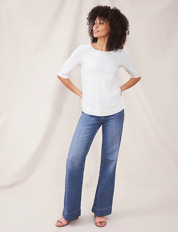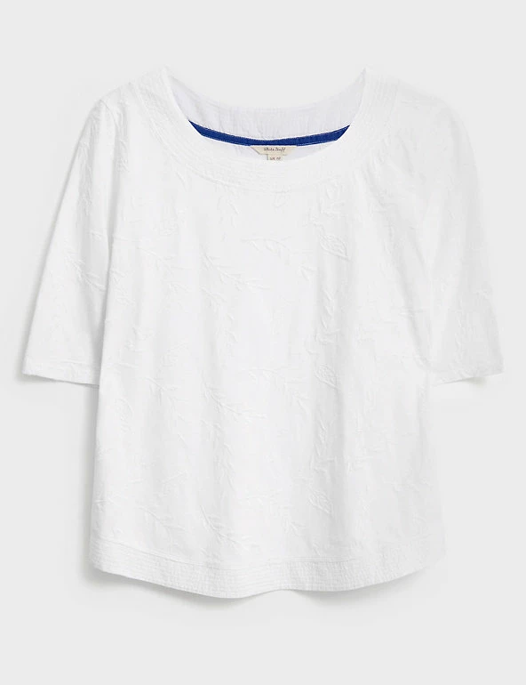 Tonal botanical embroidery brings a dainty feel to this pure-cotton tee by White Stuff. It’s cut to a comfy regular fit, with short sleeves. Considered touches include the flattering curved hem and stitch detailing at its crew neckline.