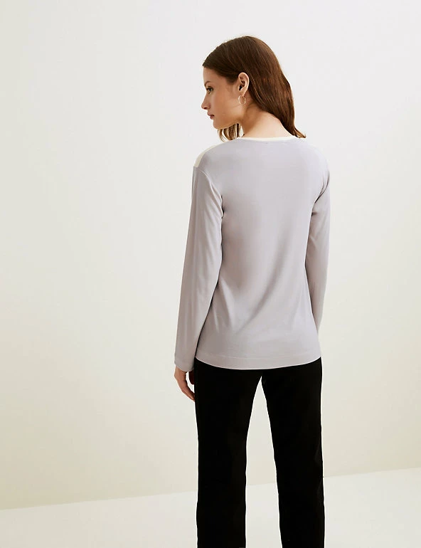 Pull on this colour block top from our Autograph range. It’s cut to a classic regular fit, with long sleeves that are styled in a contrasting colour from the main body for a stand-out look. A round neck offers a neat finish.