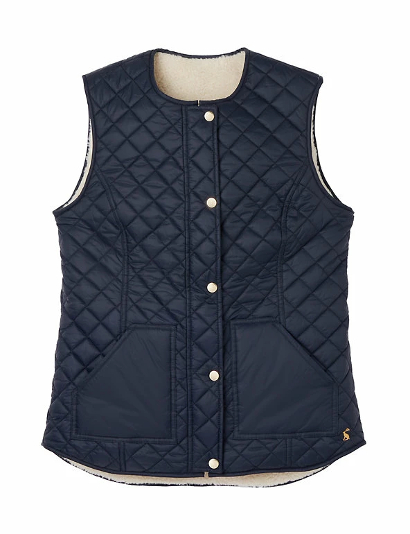 Switch up your look in an instant with this reversible gilet from Joules. It’s cut to an easy regular fit, making it perfect for everyday wear. One side of the versatile design features soft borg fabric and the other has cosy diamond-shaped quilting. There are handy pockets on either side and it’s complete with a press stud and zip fastening.