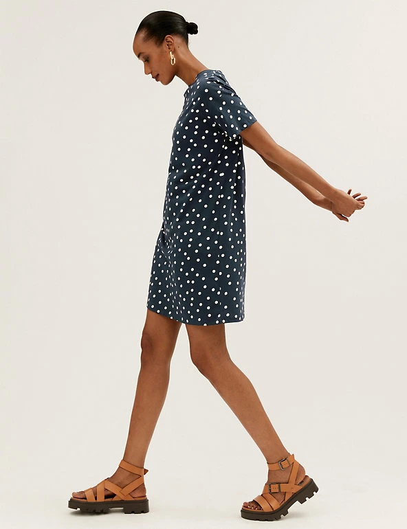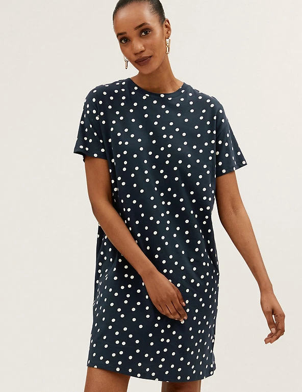 Pull on this pure cotton mini t-shirt dress to discover your new everyday favourite. It’s cut in a regular fit with playful polka dots for a fun flourish.