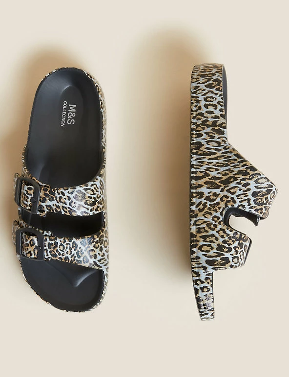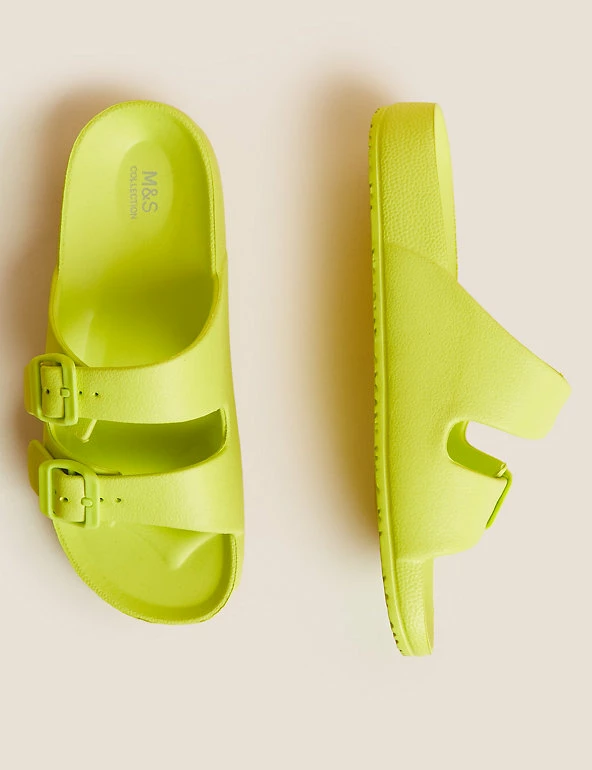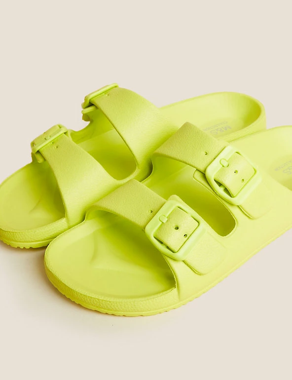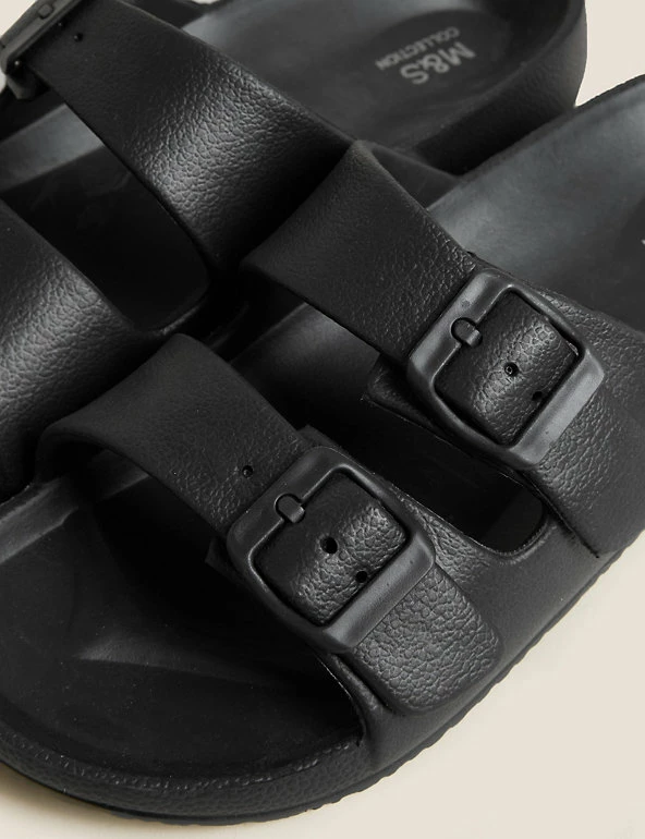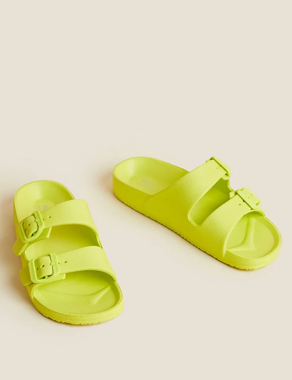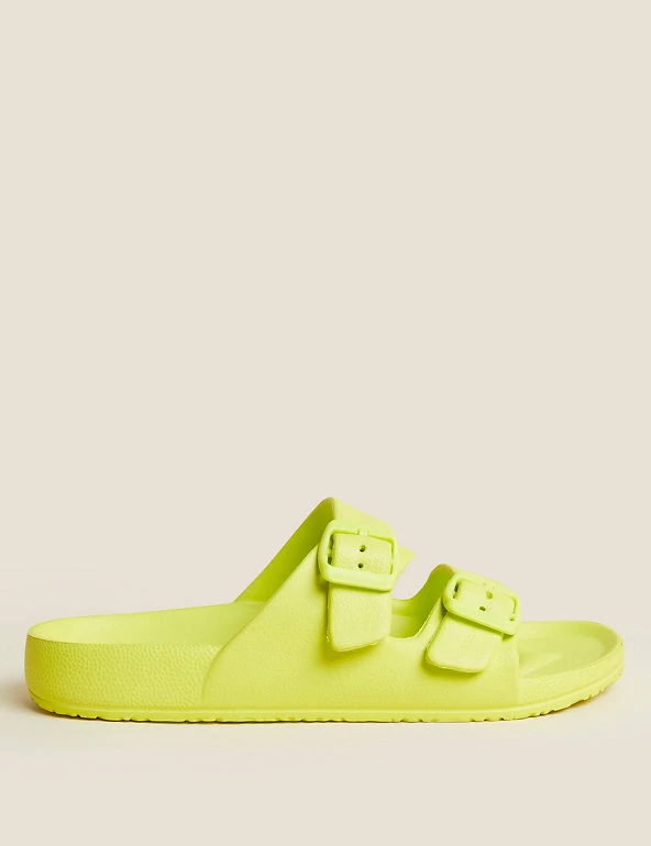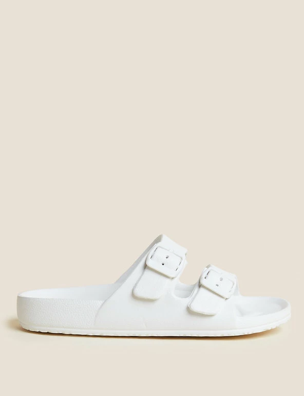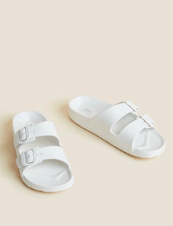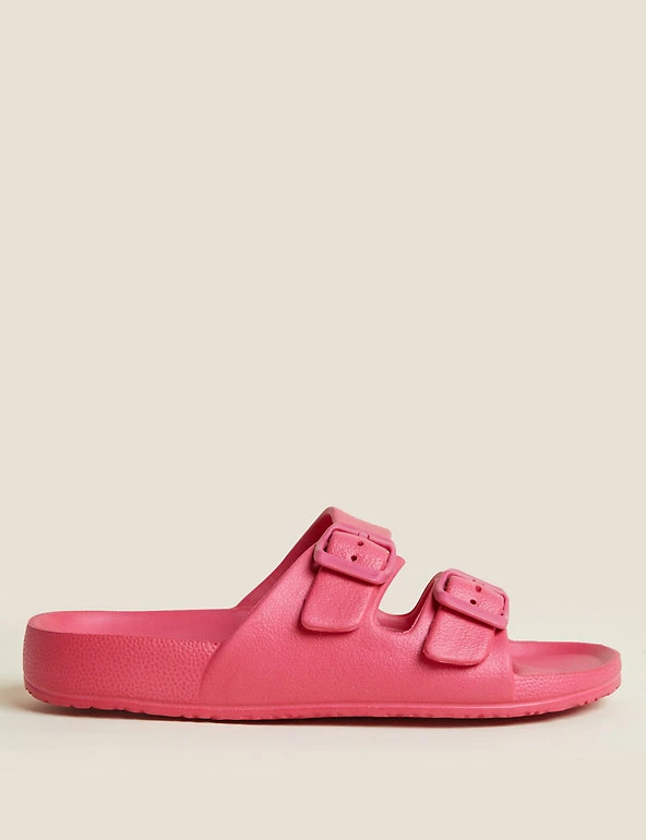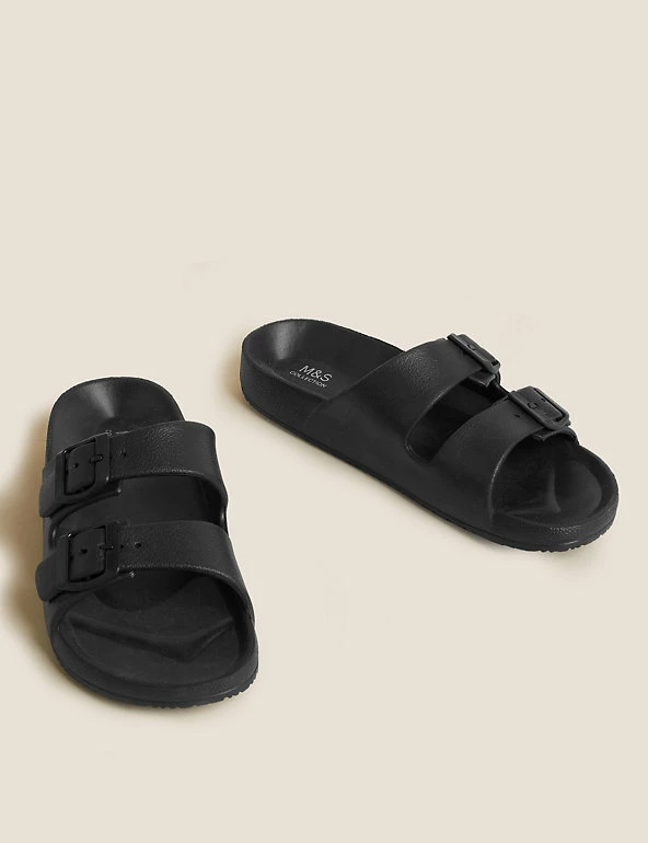 Get ready for balmy days with these slider sandals. Regular fit, with a comfortable moulded footbed and flat heel. Slip-on design with a double buckle front for a secure fit. Antibacterial padding keeps them fresh. M&S Collection: easy-to-wear wardrobe staples that combine classic and contemporary styles.