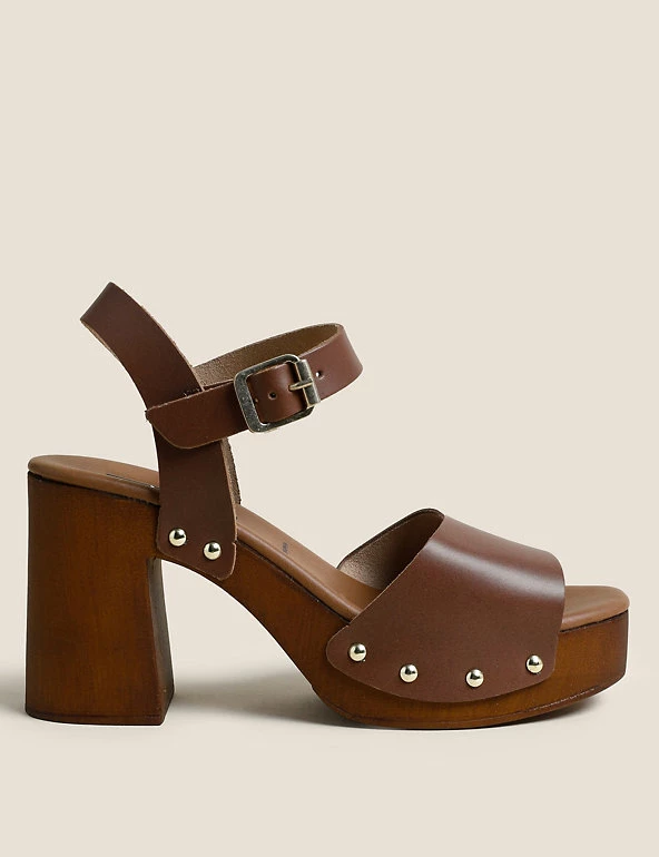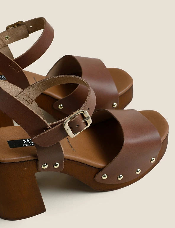 Striking and oh-so-wearable, these leather clogs tick every box. Made in Italy, they feature a chunky wood-effect platform heel which is studded for a dash of retro-inspired detail. Secured at the ankle with a gleaming buckle. Made with responsibly sourced leather.