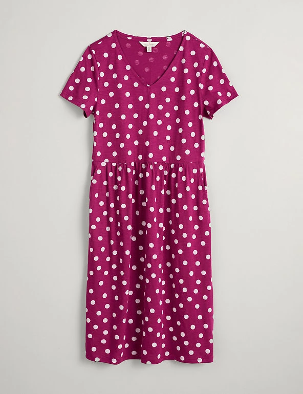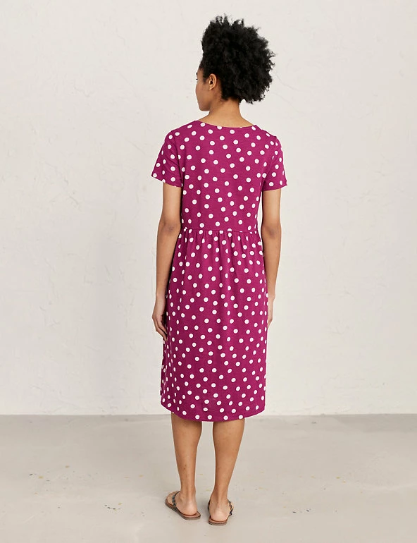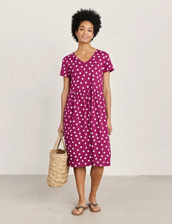 Easygoing spring days call for this short-sleeved waisted dress from Seasalt Cornwall. It’s designed in a comfy regular fit with a feminine v-neck and falls to a flattering knee-length. This versatile piece is crafted from pure organic cotton and decorated with a timeless spot print. Hidden side pockets make room for your essentials. Made with organic cotton.