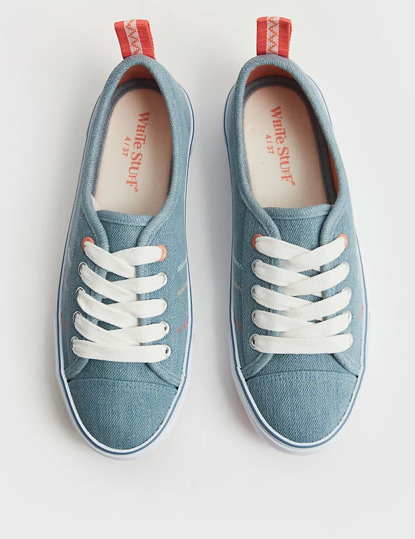 These pure cotton pumps by White Stuff are perfect for off-duty days. They’re designed in a regular, slip-on fit, with classic lace detailing. A contrast pull tab and zig-zag stitching add extra interest, while the rubber sole brings a pop of colour.