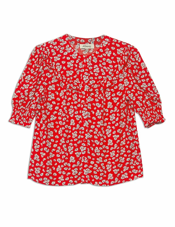 With its daisy print and frilly trims, this Albaray blouse exudes dainty charm. It comes in a regular fit, with a neat button-through front. Shirred cuffs create subtle volume through the short sleeves. Made with sustainably sourced viscose.
