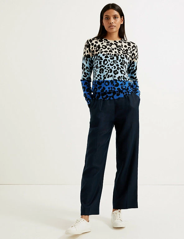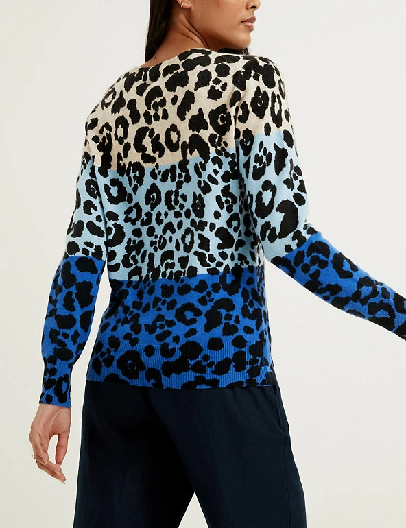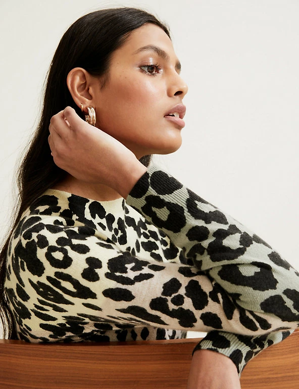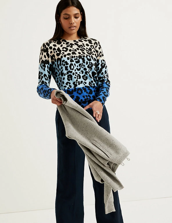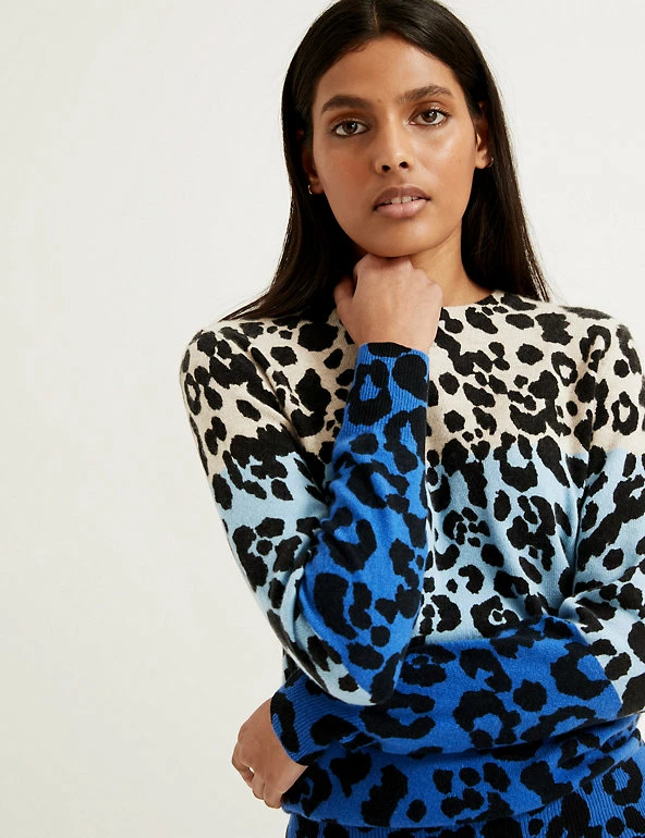 We’ve styled this pure cashmere jumper with an animal print and contrasting block colours for a playful look. It’s cut in a regular fit with a simple crew neck for easy layering. Ribbing at the cuffs, hem and neckline helps to keep in warmth on chilly days.