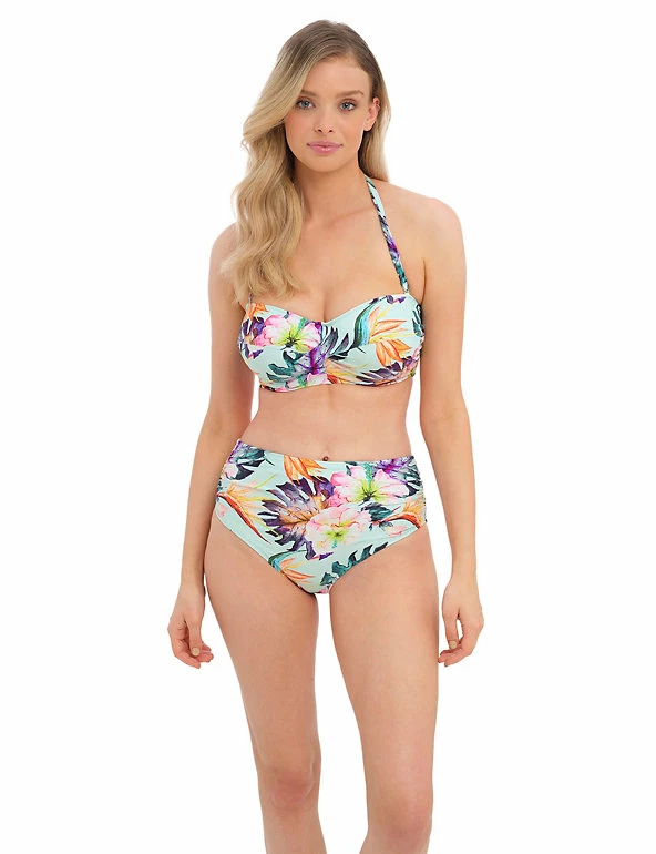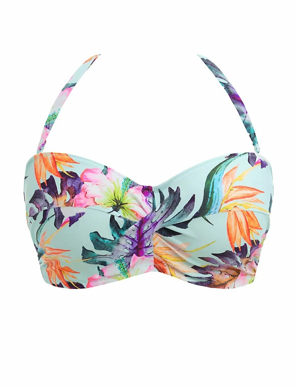 Perfect for your next getaway, this Fantasie bandeau bikini top comes with a striking floral print. The removable scarf straps allow you to style the piece however you like. Itβs designed for a fuller cup with wiring at the bust for extra support.