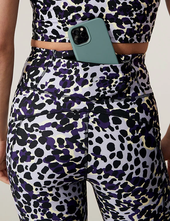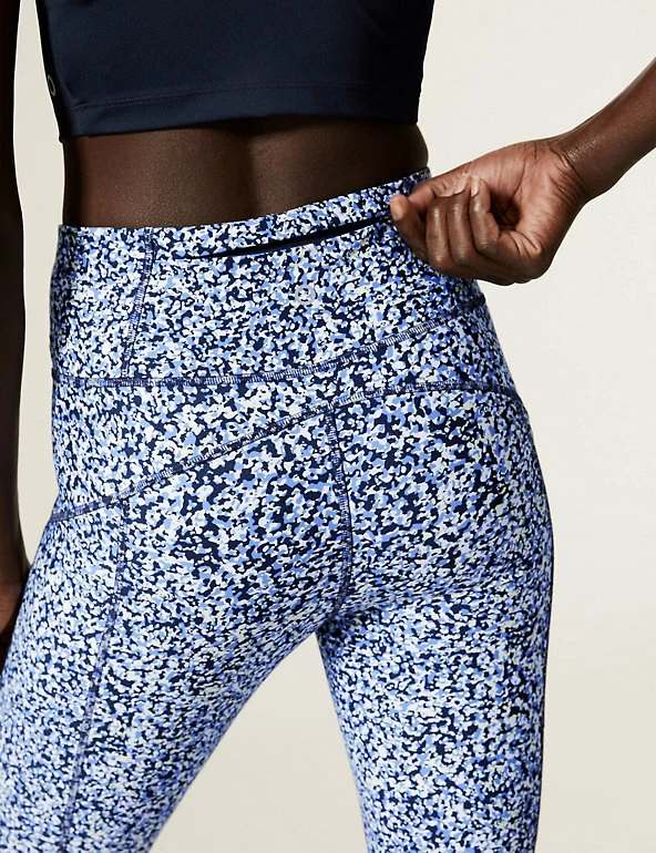 Take your workout up a notch with these printed gym leggings from our Goodmove collection. This cropped pair is cut in a regular fit with a high waist and an inner drawstring for a neat finish. Moisture-wicking, quick-drying and breathable fabric with added stretch keeps you cool as you move. Plus, we’ve slipped a practical phone pocket in the side and a secure back pocket on the waistband to keep essentials safe. Made with recycled polyester.