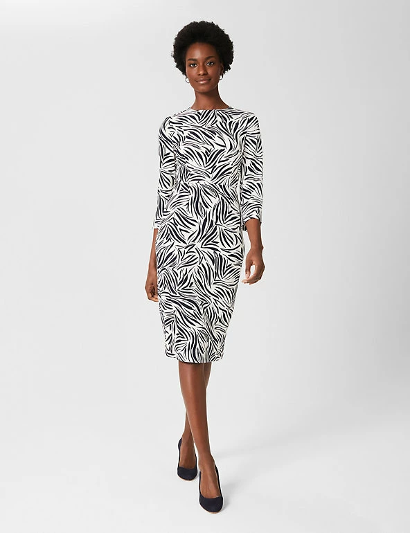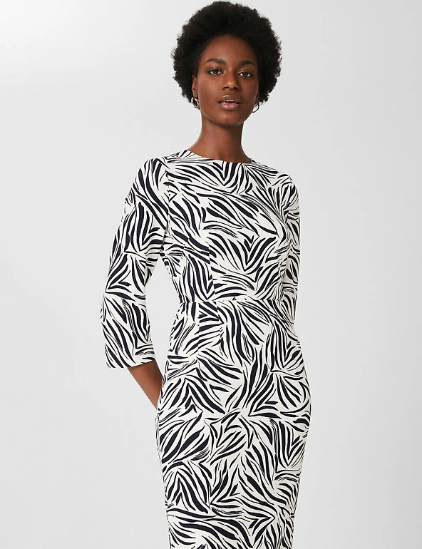 Take on office days in statement-making style with this printed shift dress by Hobbs. It’s cut to a regular fit, with a straight skirt that falls to a midi length. The round neckline and 3/4-length sleeves lend an extra-sophisticated note to the design. It’s complete with a neat back zip fastening.