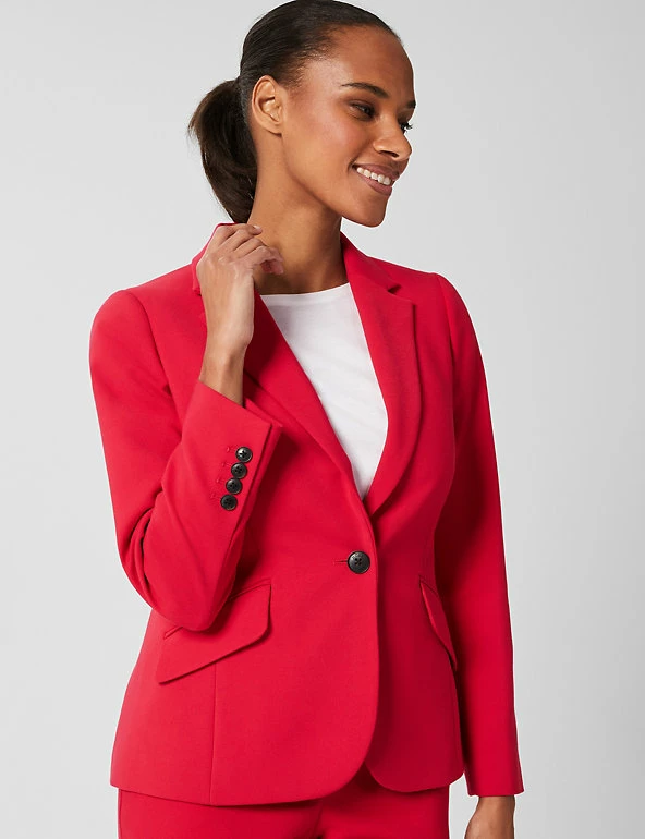 With its simple yet striking silhouette, this Hobbs single-breasted blazer adds instant style points to any outfit. It’s cut in a comfortable regular fit, with a contrast button fastening for statement detailing. Diagonal flap pockets at the waist provide useful storage, and the blazer is fully lined for comfort. Made with recycled polyester lining.