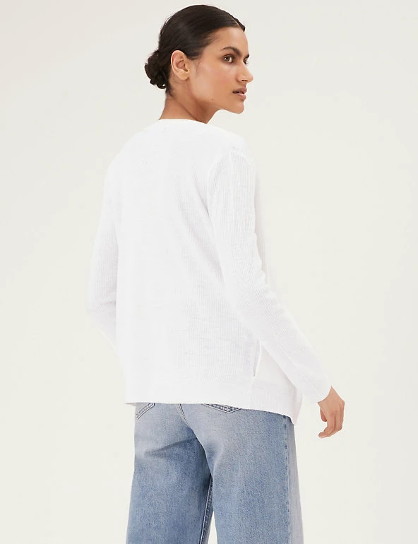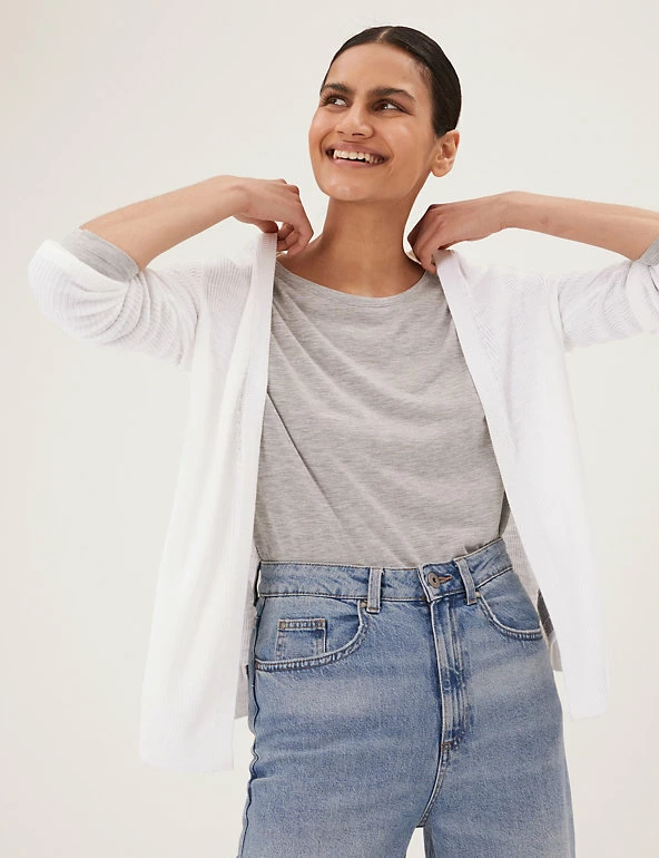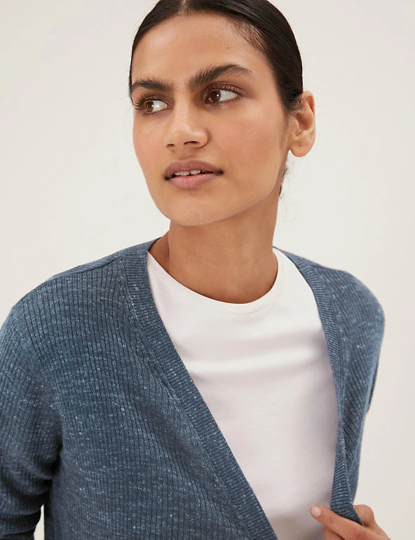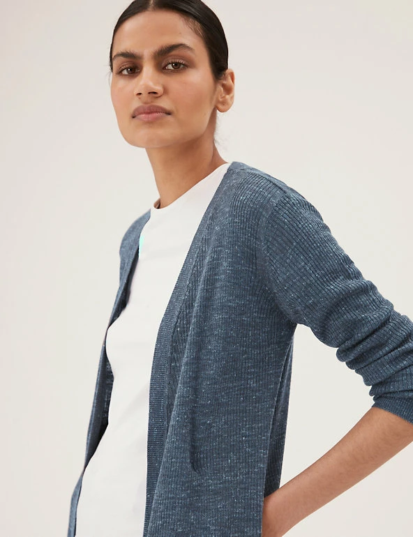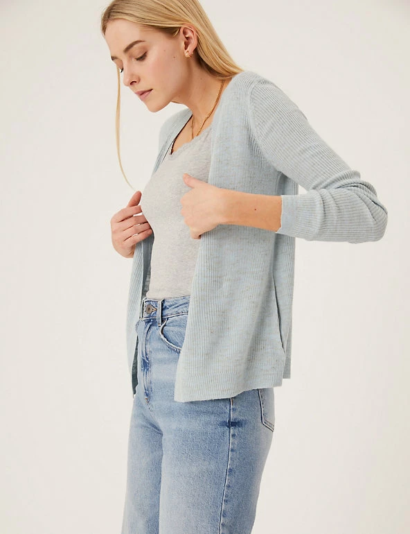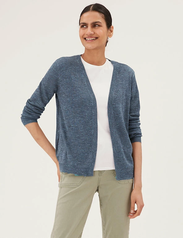 Stay cosy with this ribbed cardigan. It has a relaxed fit for a casual look and easy layering. A touch of linen adds lsoft uxury while an open front gives an effortless finish.