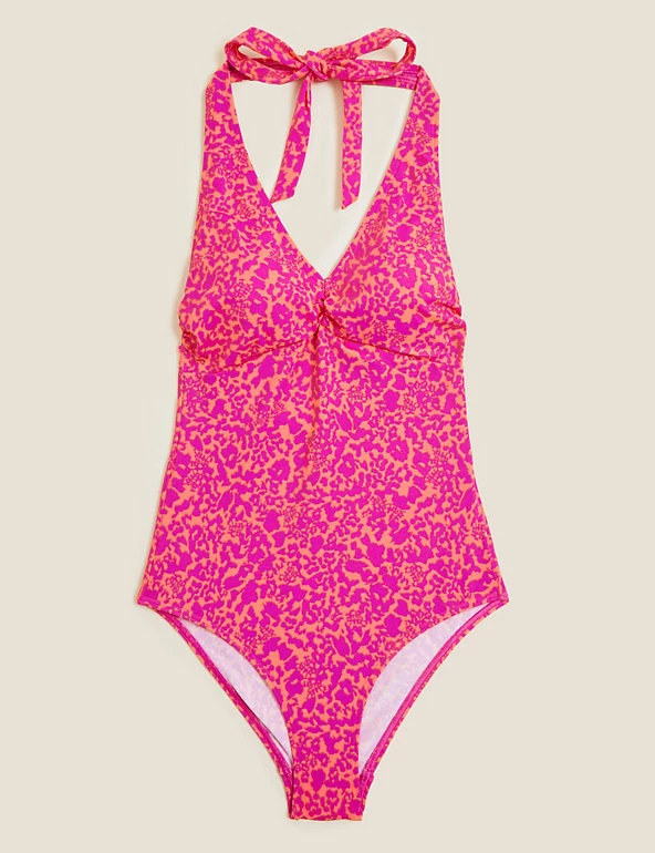 Make a splash in this bold animal print swimsuit. Regular fit, with a halterneck for flattering shaping. Chlorine-resistant StayNewβ’ technology keeps it looking new for longer.