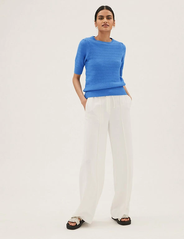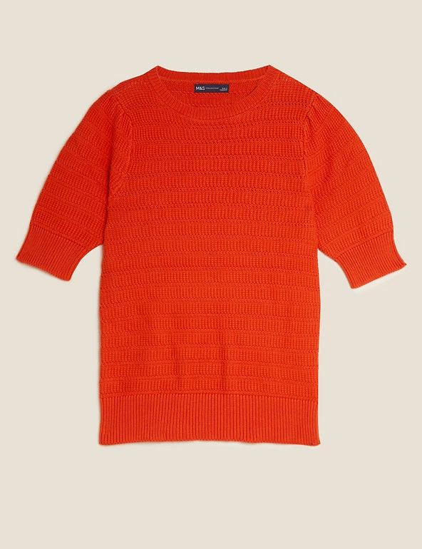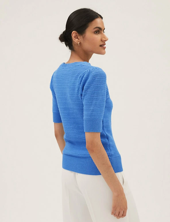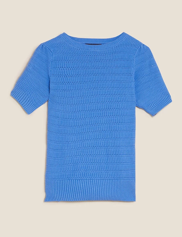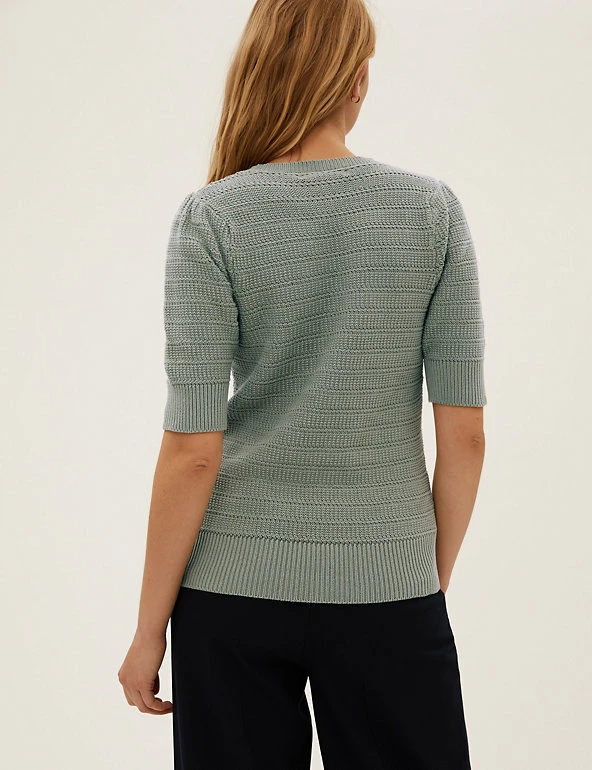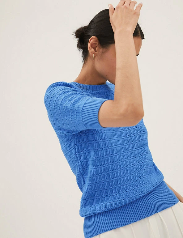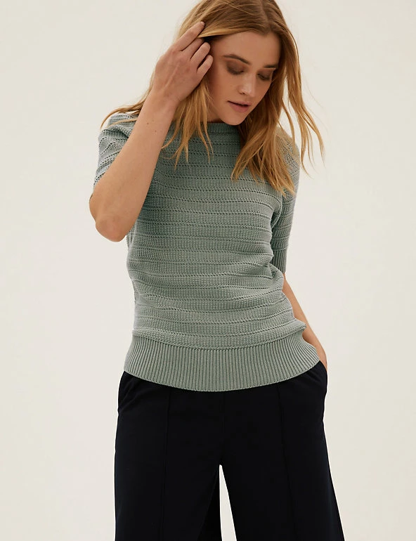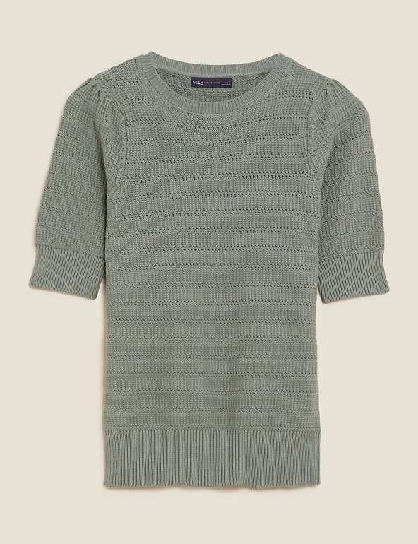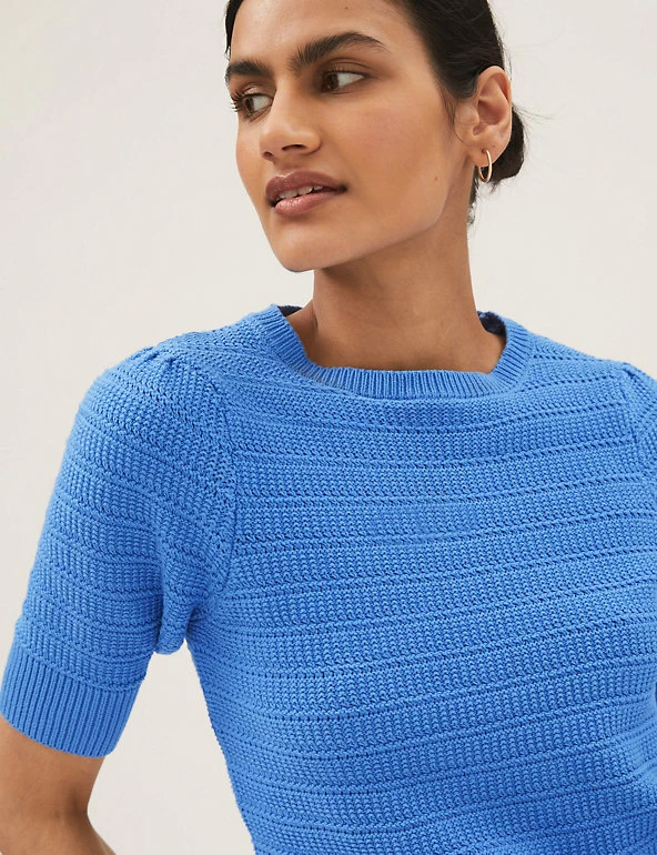 Put a fresh spin on your casual style with this cotton-rich top. Short puff sleeves and a delicate knitted texture give this regular-fitting piece a vintage-inspired touch. We only ever use responsibly sourced cotton for our clothes.