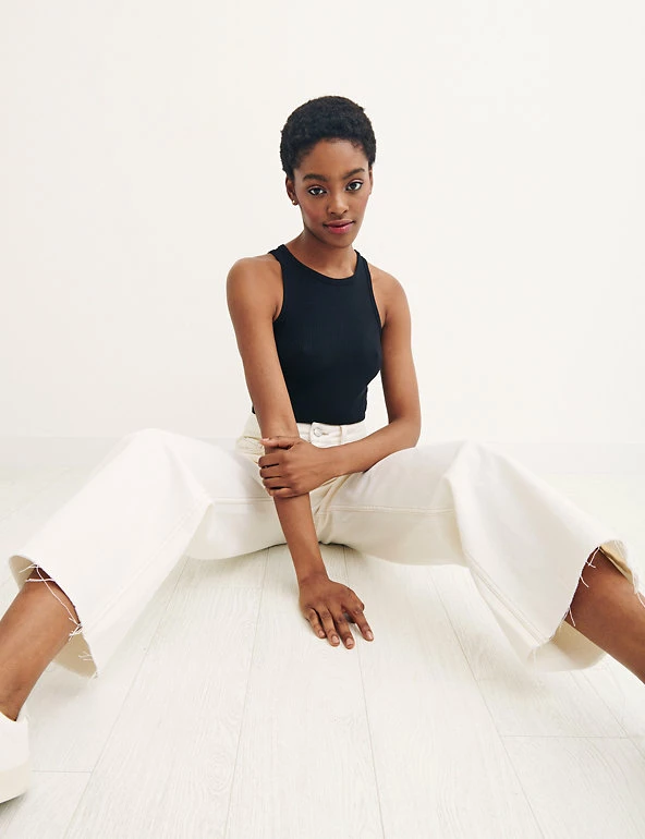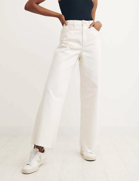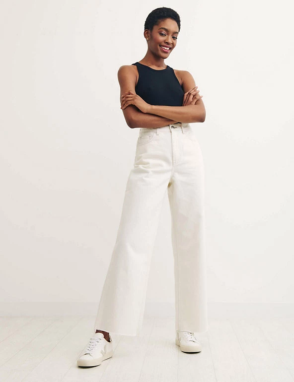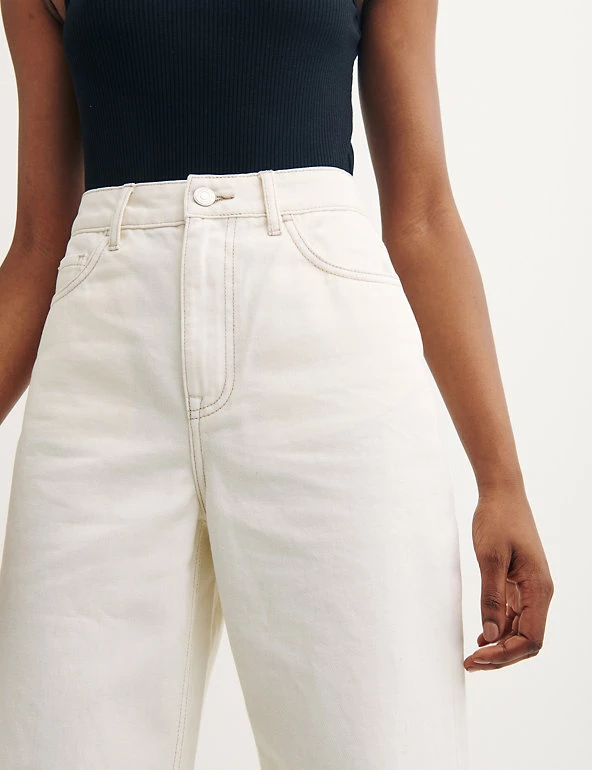 Wide leg, Button and zip fastening, High waisted, Organic cotton