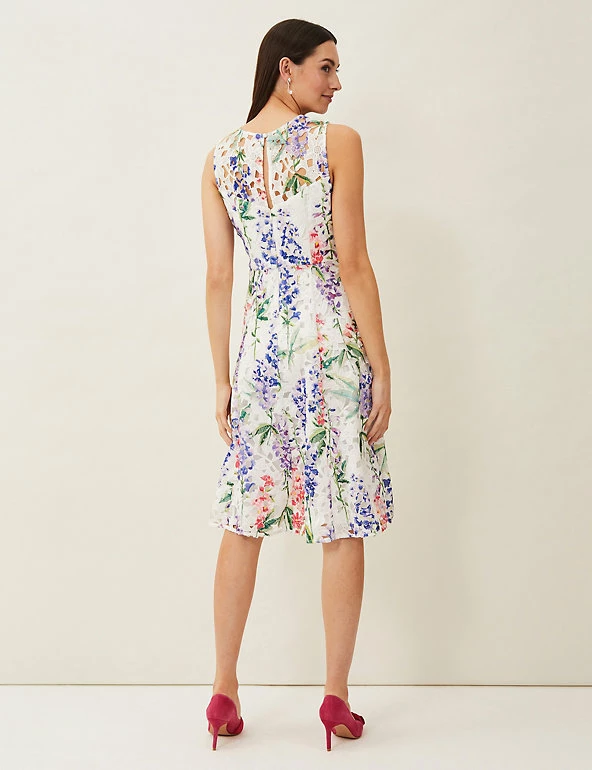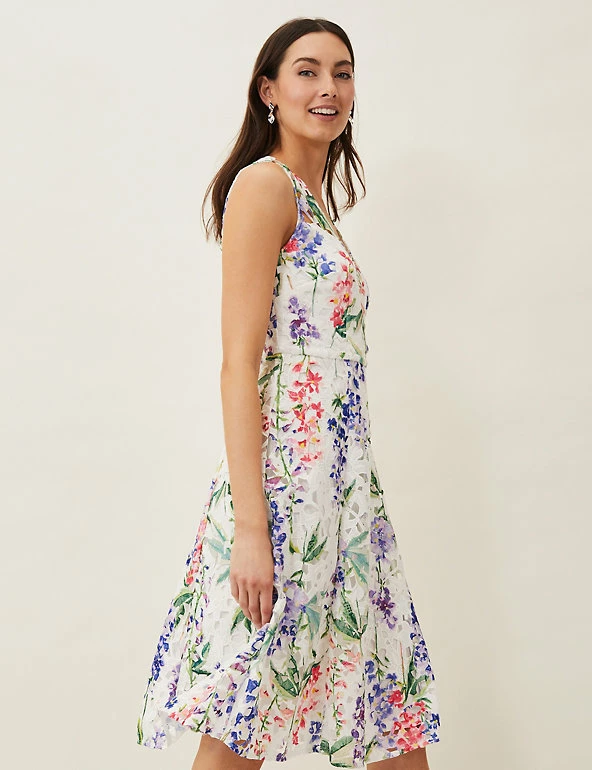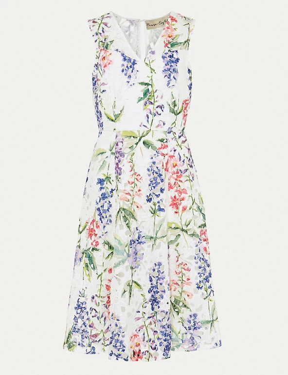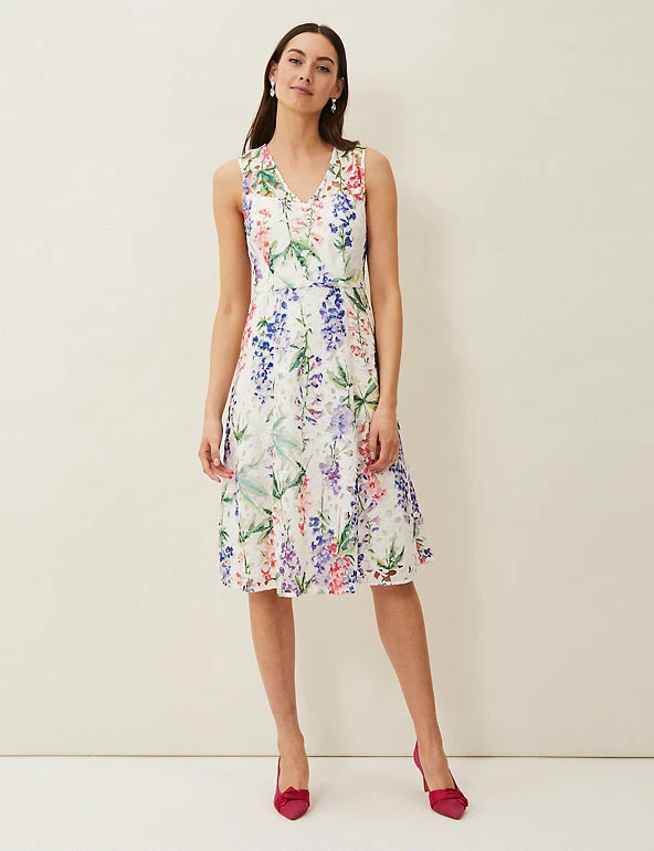 This tea dress by Phase Eight brings extra pizazz to the party with its vibrant floral print. Designed in a regular fit, this sleeveless piece sports a flattering v-neckline and full lining, falling to an elegant knee-length. A layer of broderie lace adds extra femininity as well as a lovely sense of texture.