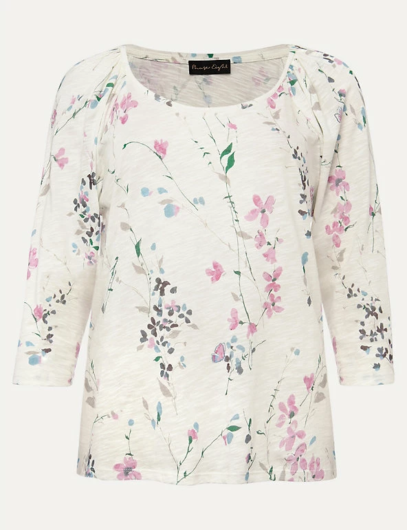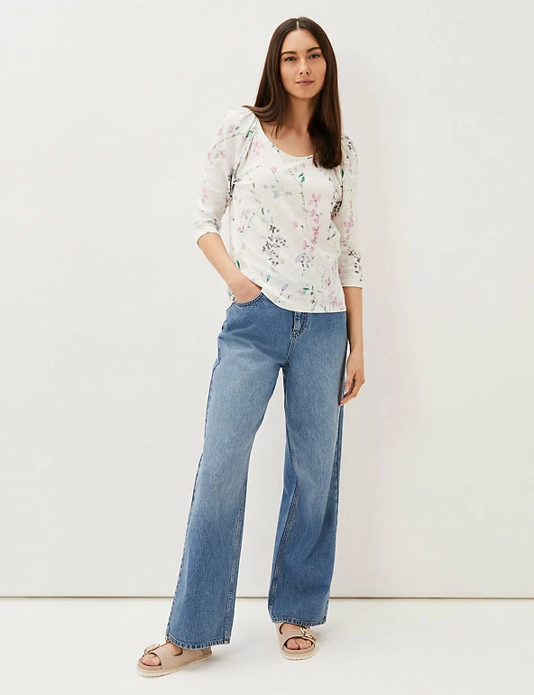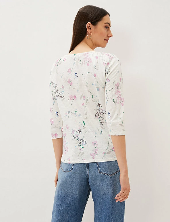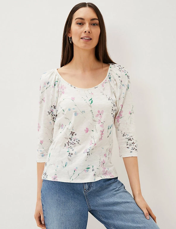 Get into the mood for spring with this floral-print top by Phase Eight. It’s cut to a regular fit from breezy pure cotton, with an elegant round neckline. Gathering at the shoulders creates a flattering drape through the three-quarter length sleeves.
