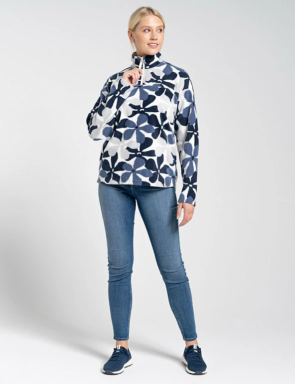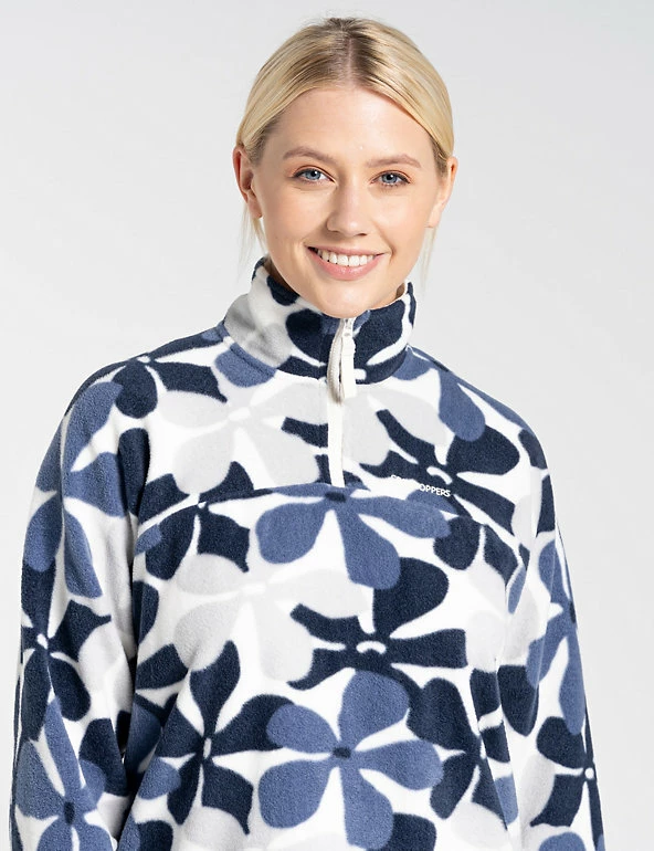 Crafted from snug fleece with a floral design, this Craghoppers jacket is ideal for chilly adventures. It’s designed in an easy relaxed fit with a cosy high neck and an easy half-zip closure. Made from recycled polyester.