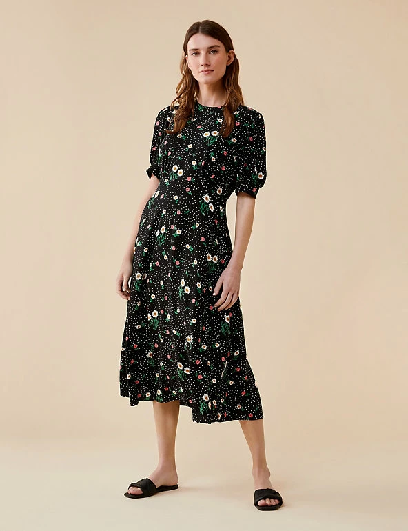 With its flattering shape and mixed floral print, this Finery London tea dress is a versatile option. This regular-fit style features short puff sleeves and a midi length hem for a modern, romantic look. It fastens with a zip at the back.