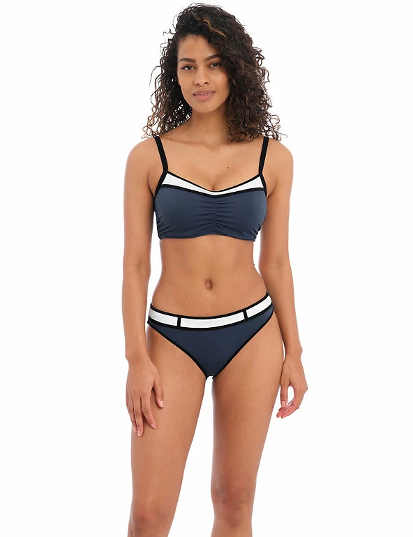 With their colour block design and mock belt detail, these Freya bikini bottoms introduce a Bond girl-inspired look to your swimwear collection. The briefs sit comfortably on the hips, with a flattering cut on the leg, and offer good bottom coverage. They’re crafted with Lycraยฎ Xtra Lifeโข to fit and shape without sagging.