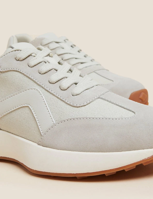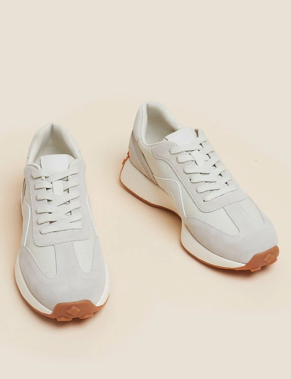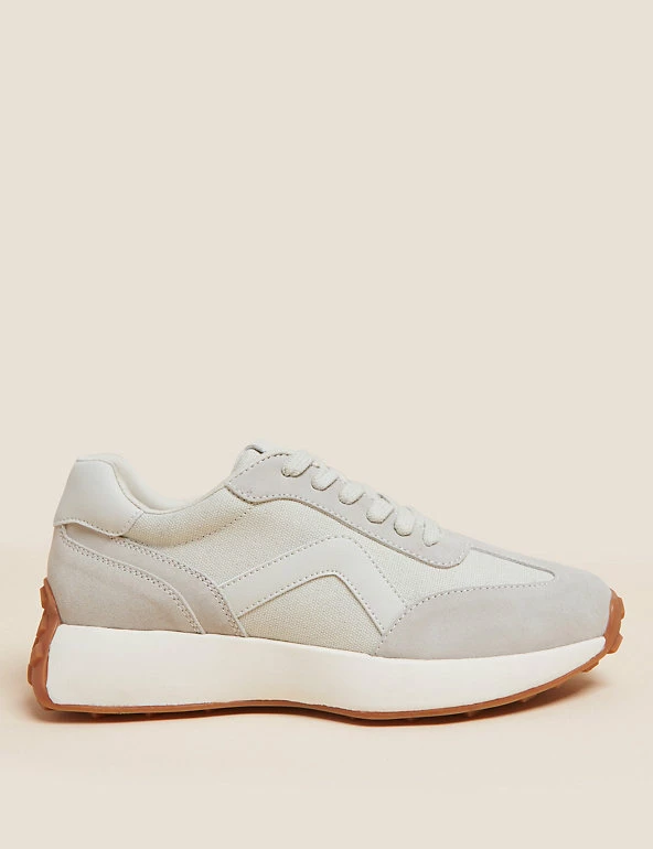 Lace up these leather trainers to conquer the busy day ahead. We’ve designed them with a chunky sole to cushion every step. Contrasting side panels add a dash of detail. Insolia Flexยฎ technology offers improved foot placement within the shoe for maximum comfort. Antibacterial padding keeps them feeling fresh. Made with responsibly sourced leather.