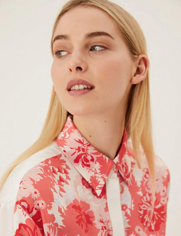 We’ve styled this longline shirt with a bold floral print for a stand-out look. Regular fit, a with button-down front and collared neck for a tidy effect. Contrasting trims on the long sleeves, placket and hem create a striking finish.